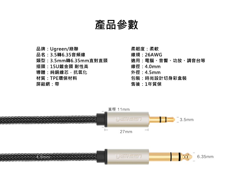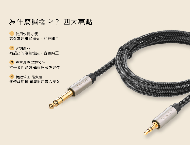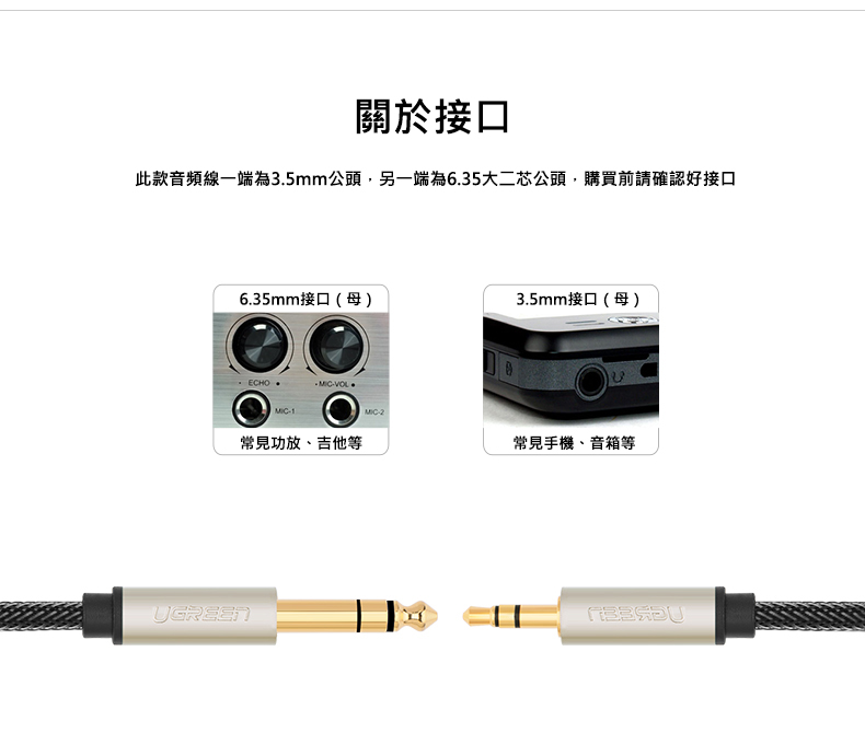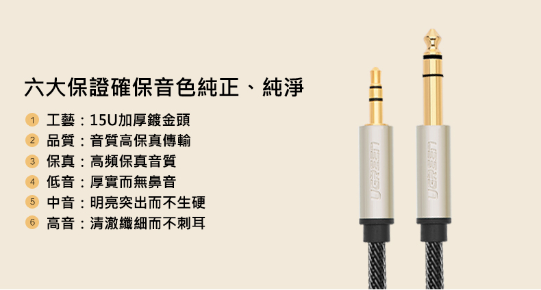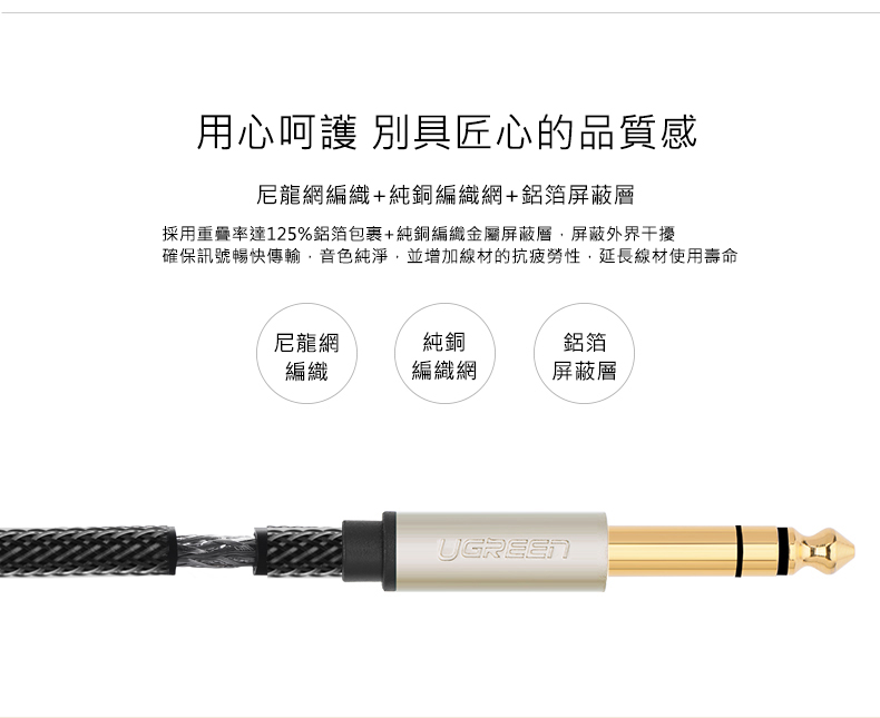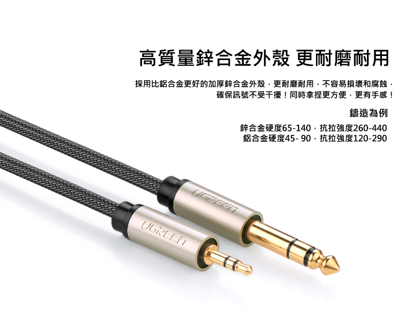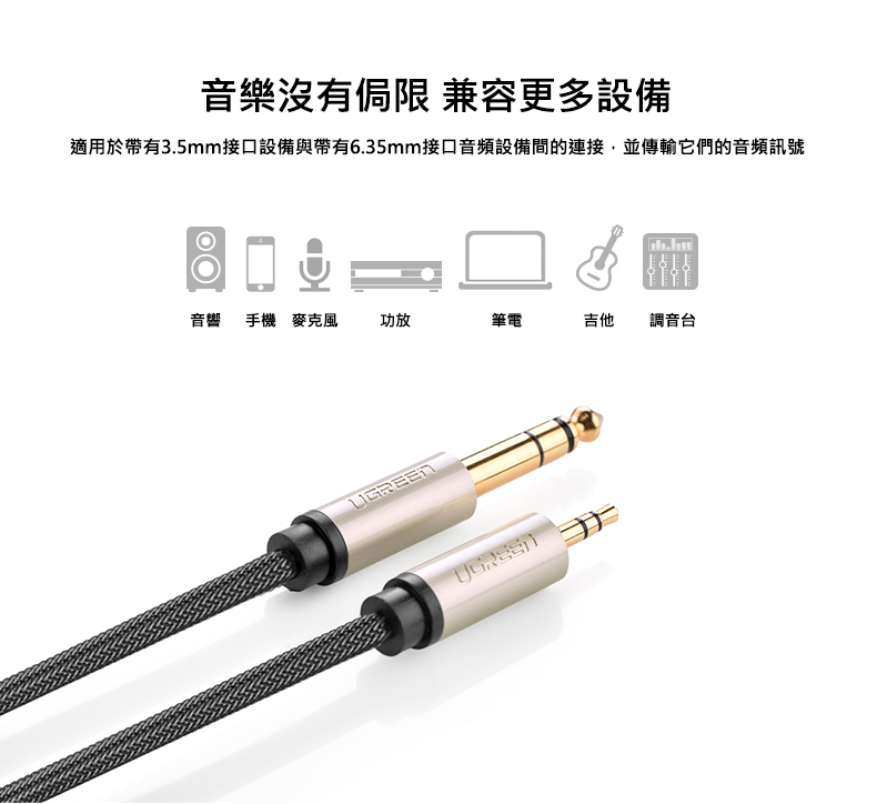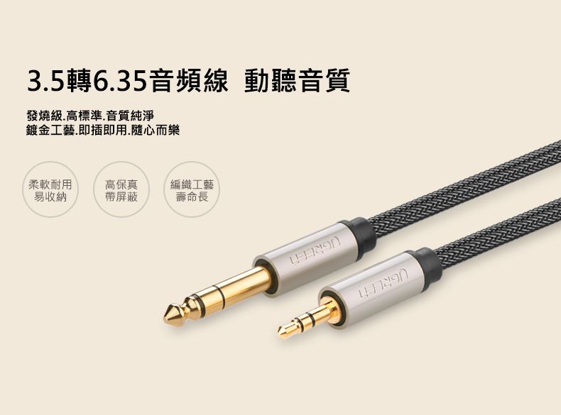 綠聯 3.5mm轉6.35mm發燒級音源線