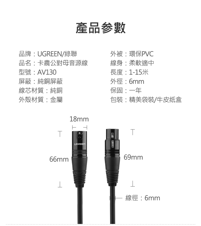 綠聯 3M麥克風專用卡農延長線XLR Connector