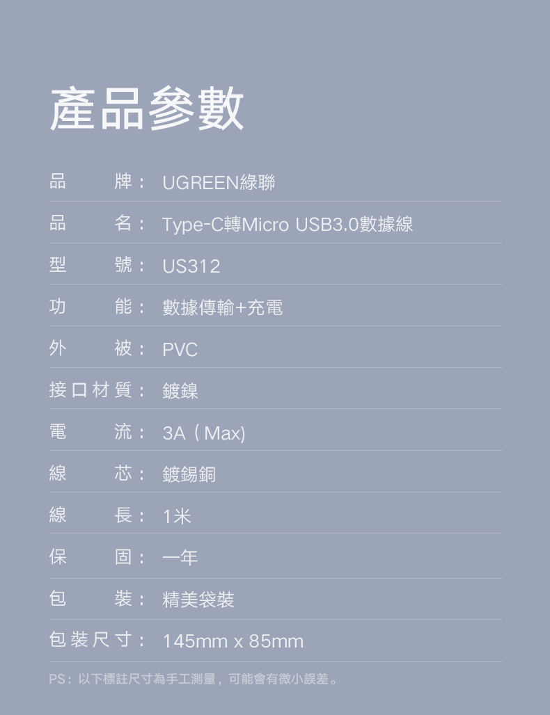 綠聯 USB Type-C轉Micro USB3.0傳輸線(1公尺)