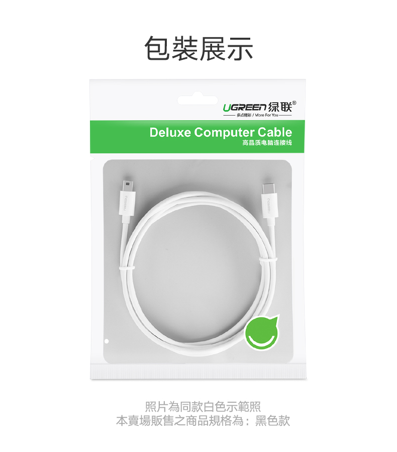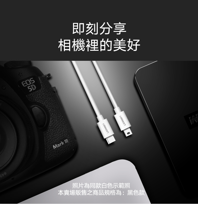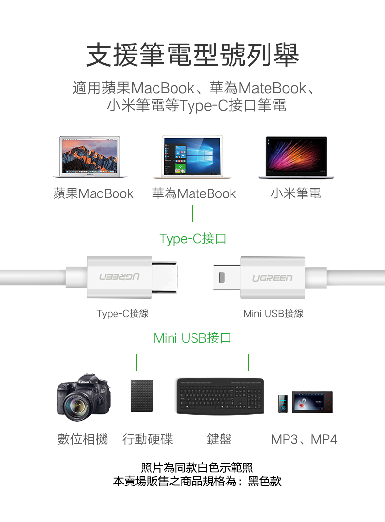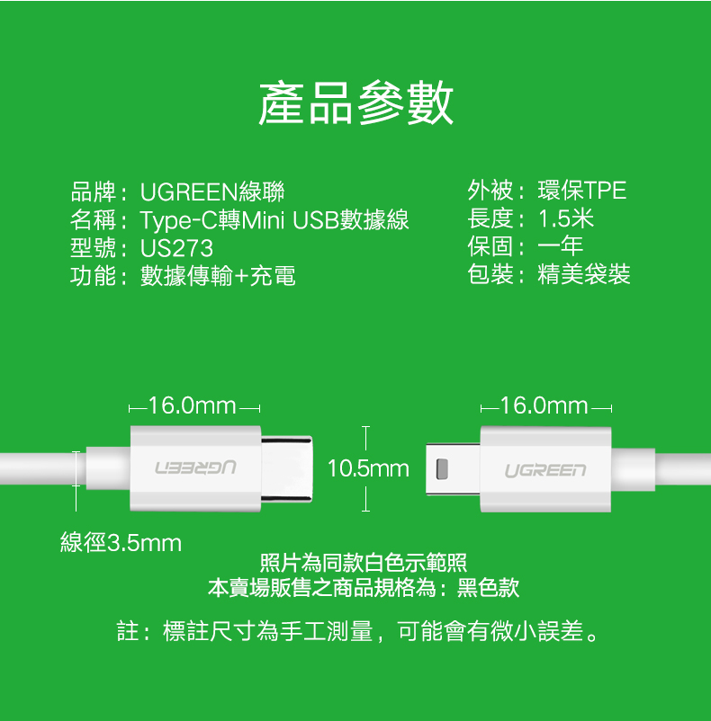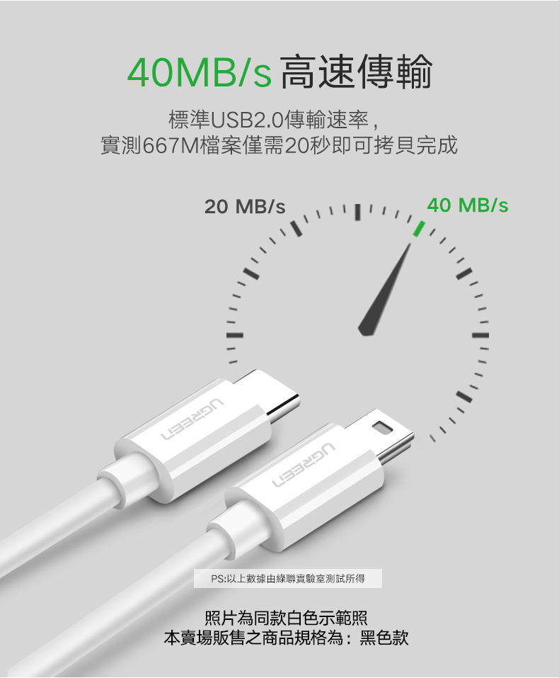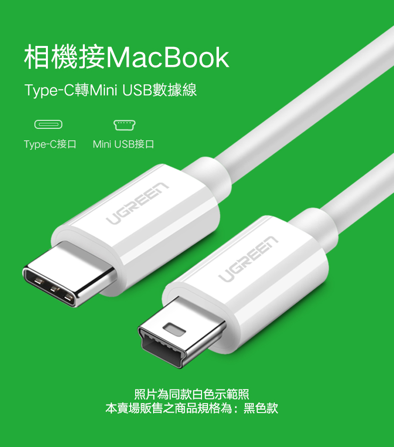 綠聯 Type-C 對Mini USB傳輸線 黑色 (1公尺)