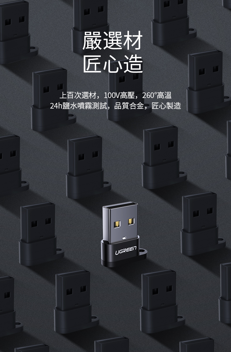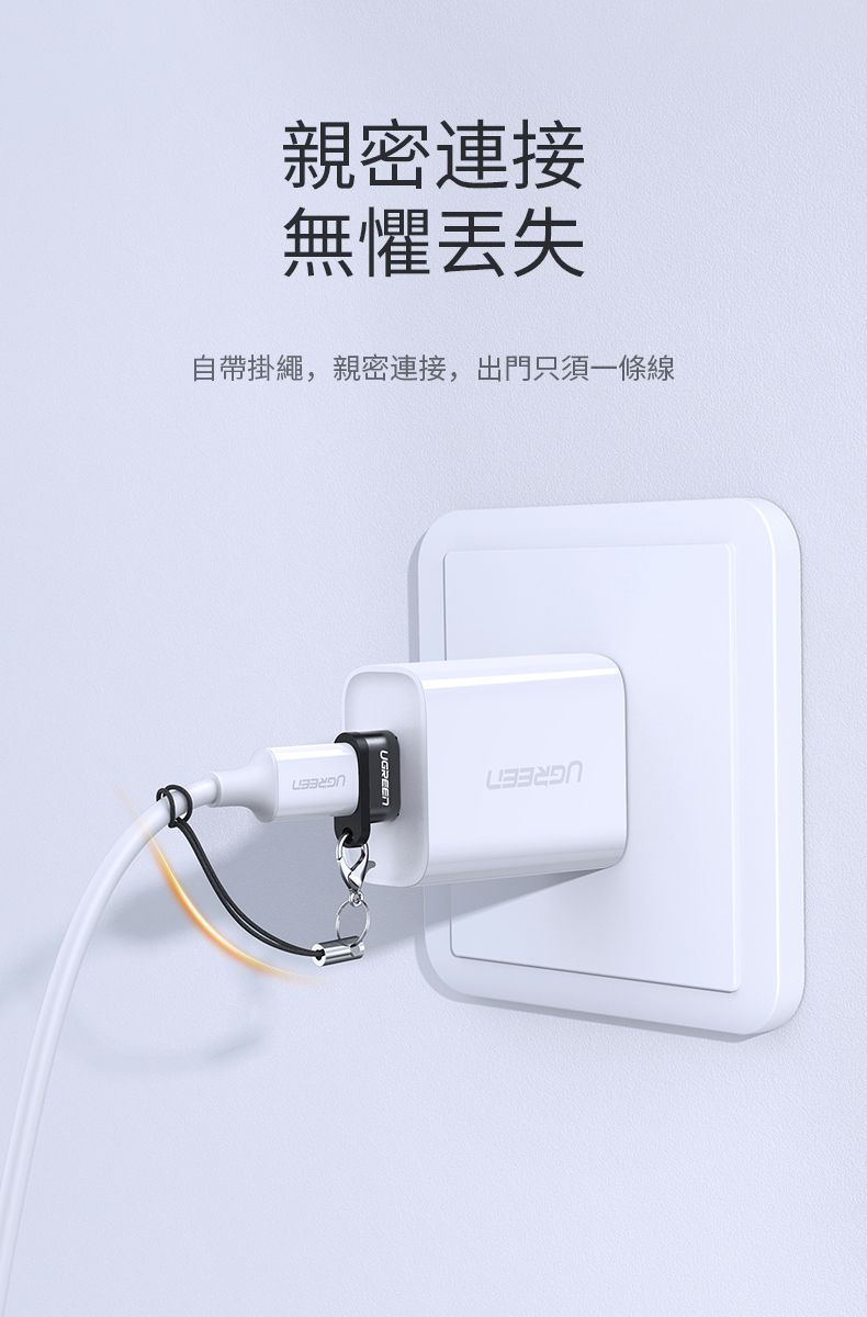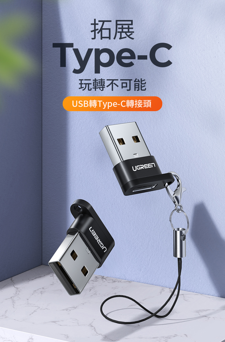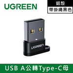 綠聯 USB A公轉Type-C母 鋁殼帶掛繩黑色 迷你版