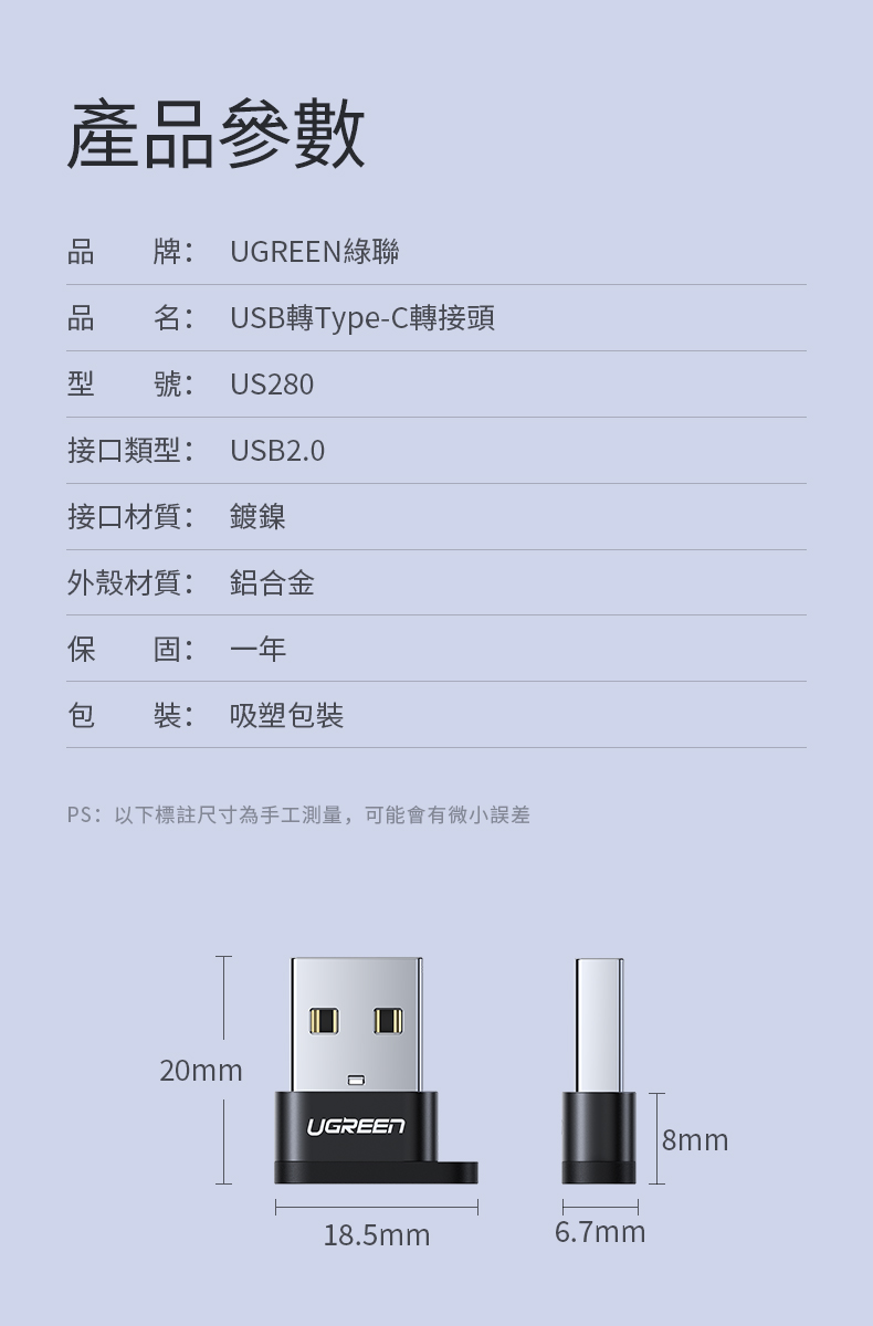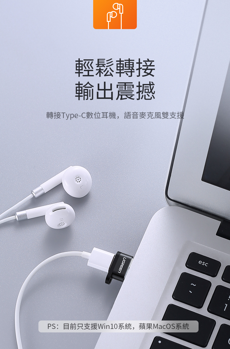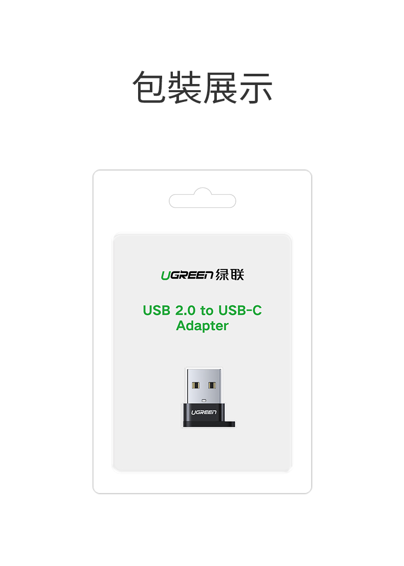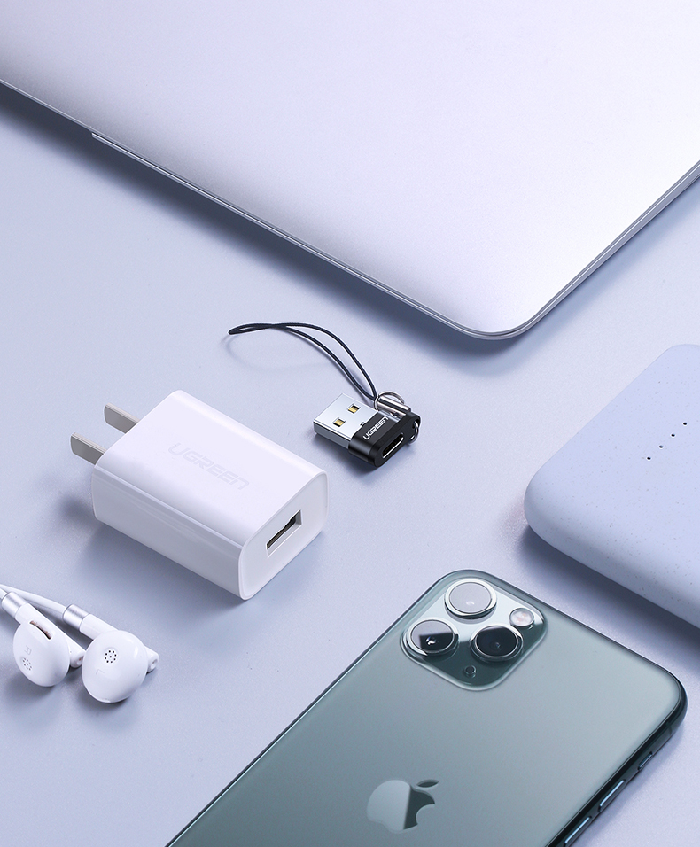綠聯 USB A公轉Type-C母 鋁殼帶掛繩黑色 迷你版