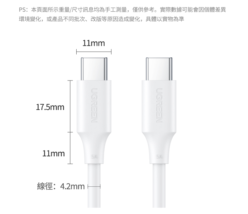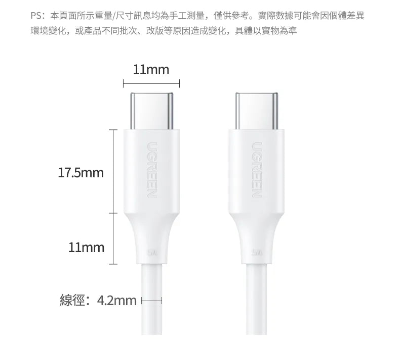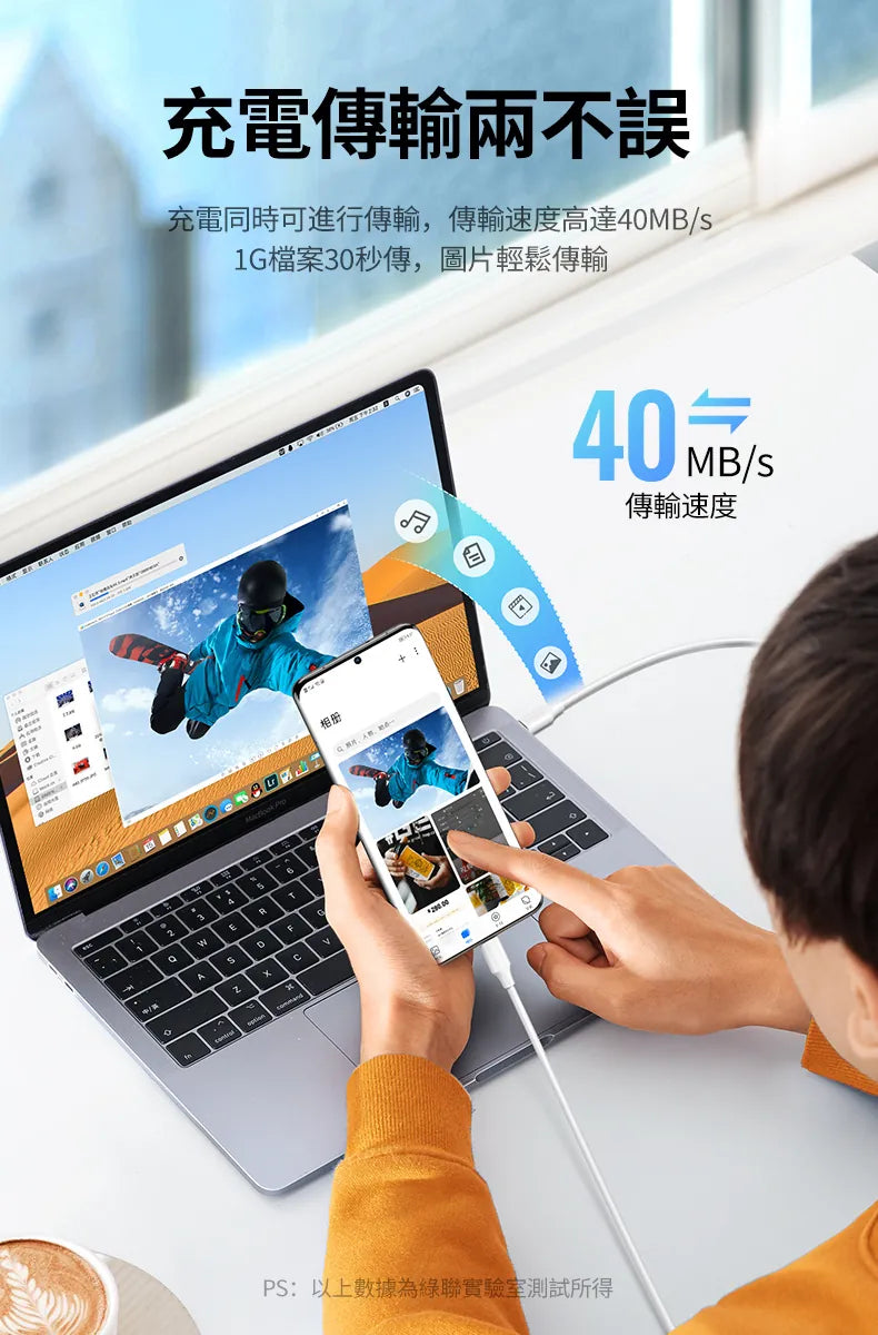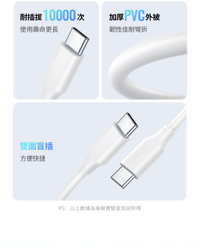 綠聯 雙USB-C 充電線/傳輸線 PD快充版