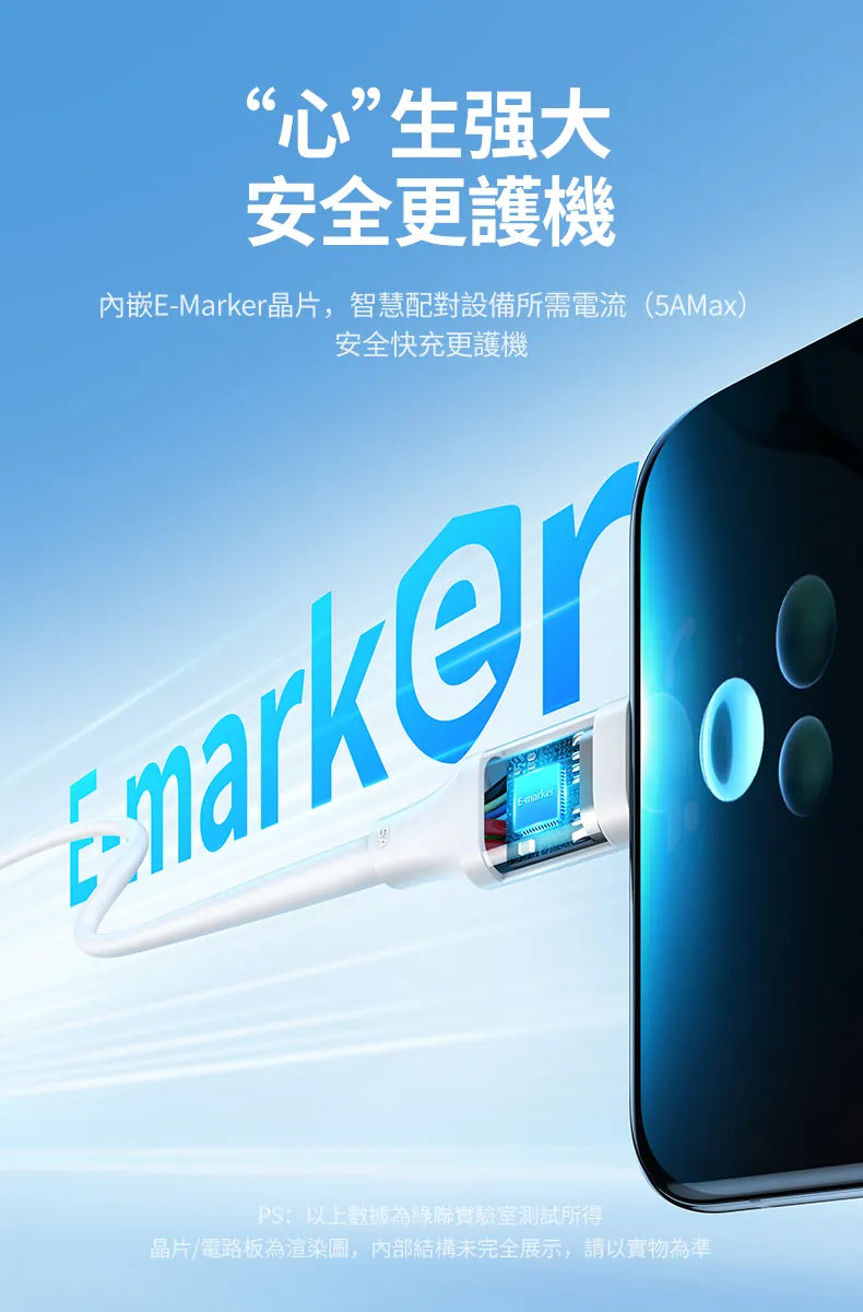◆急速滿電 PD100W閃充 ◆E-Marker晶片 智慧快充 ◆穩定傳輸 內含屏蔽殼 ◆PVC材質 柔軟耐彎折