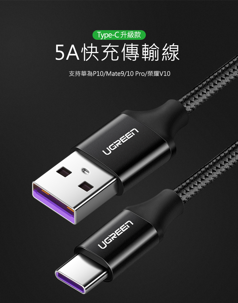綠聯 1M 5A TYPE-C USB極致快充傳輸線 BRAID版 黑色