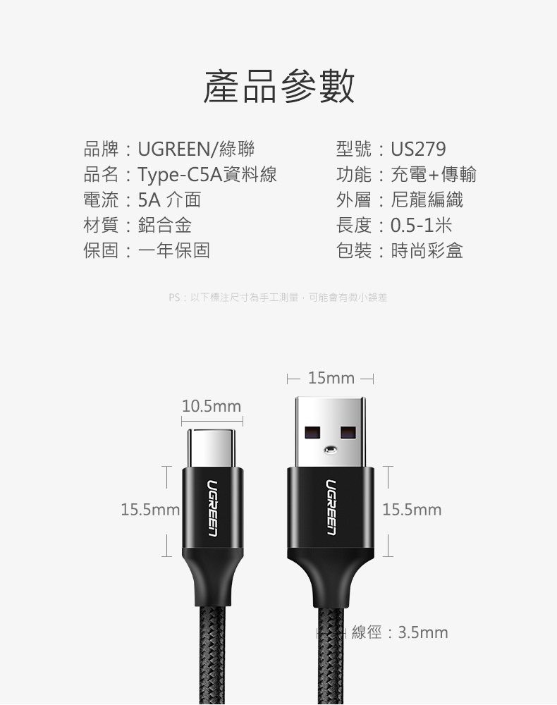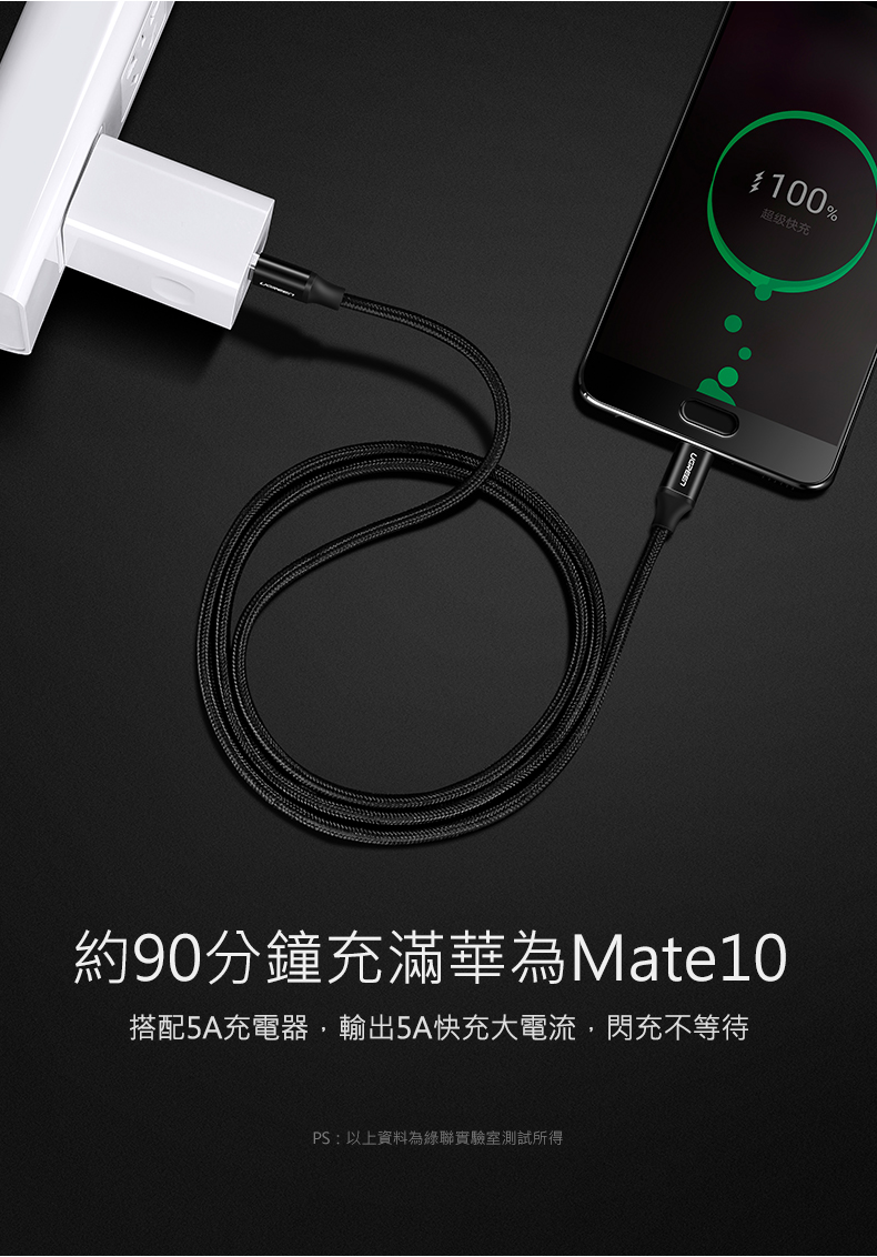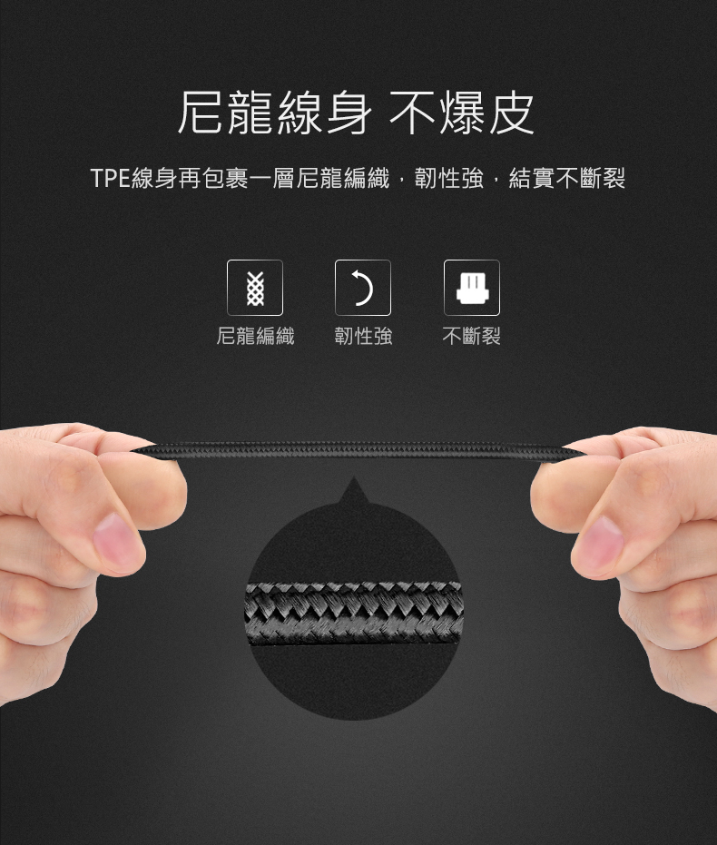 【商品特色】 ★搭配5A充電器可輸出5A快充大電流 ★比普通充電速度快50% ★尼龍線身不爆皮 ★鋁合金材質抗氧化不生鏽