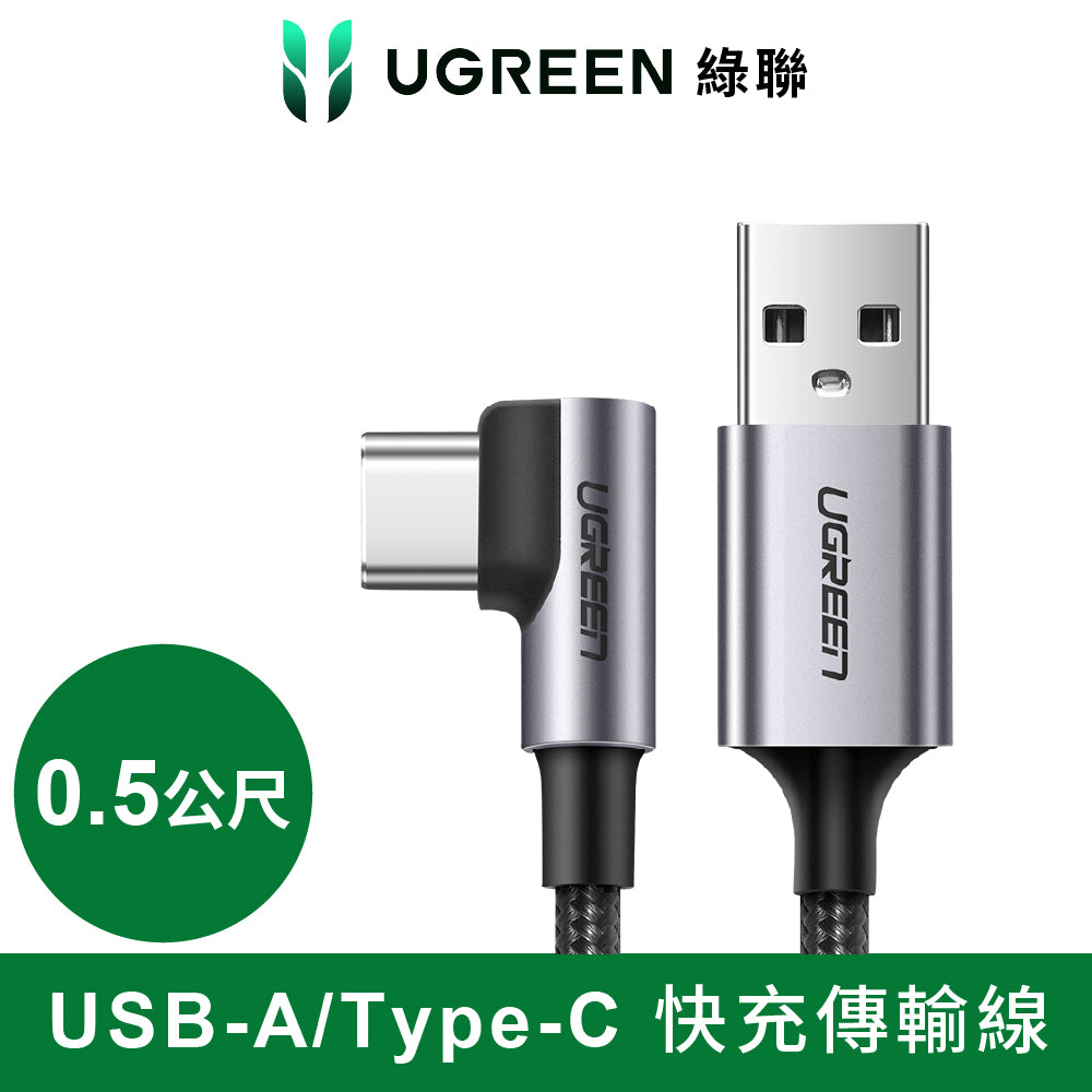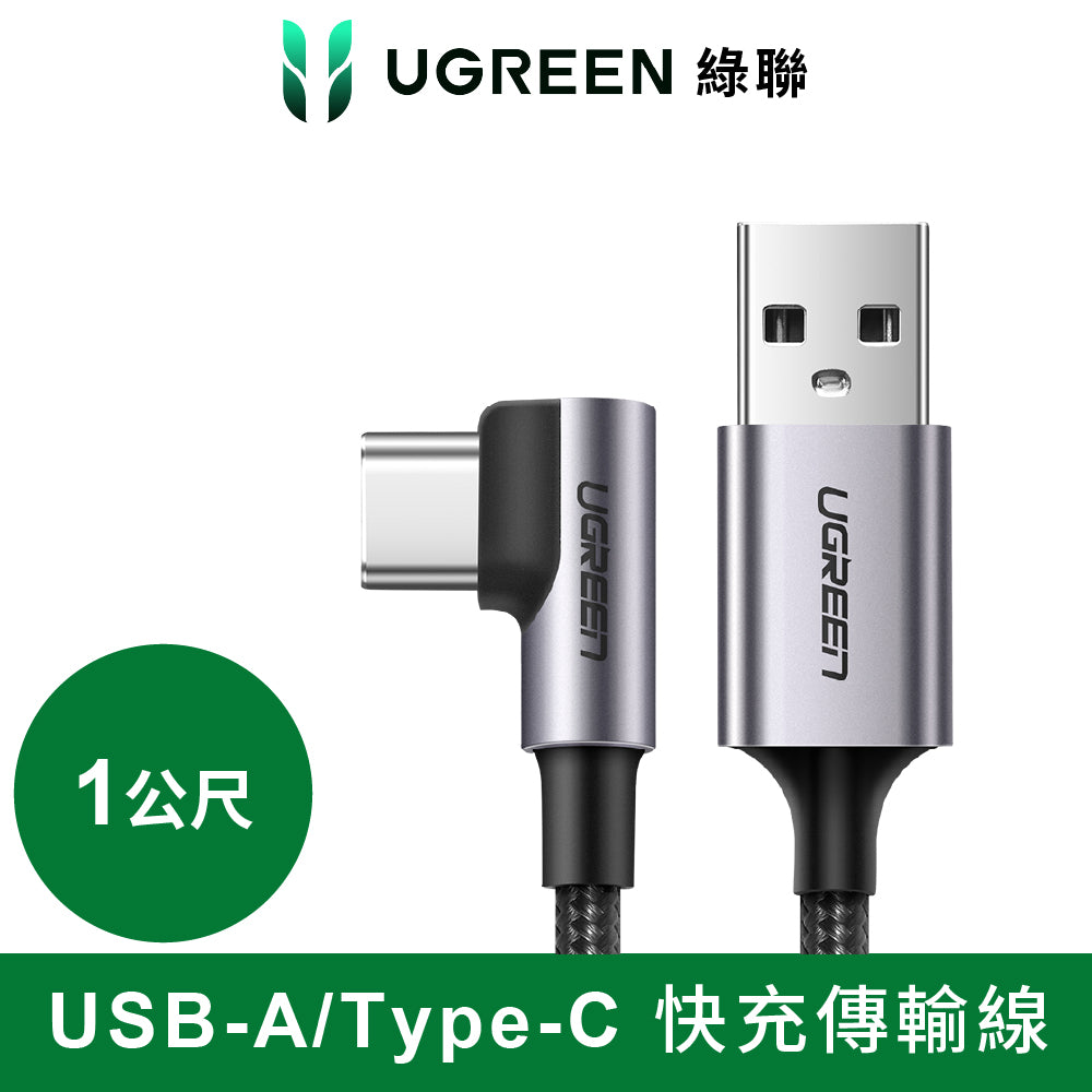 綠聯 USB-A to USB-C 快充傳輸線 金屬編織L型/電競專用版