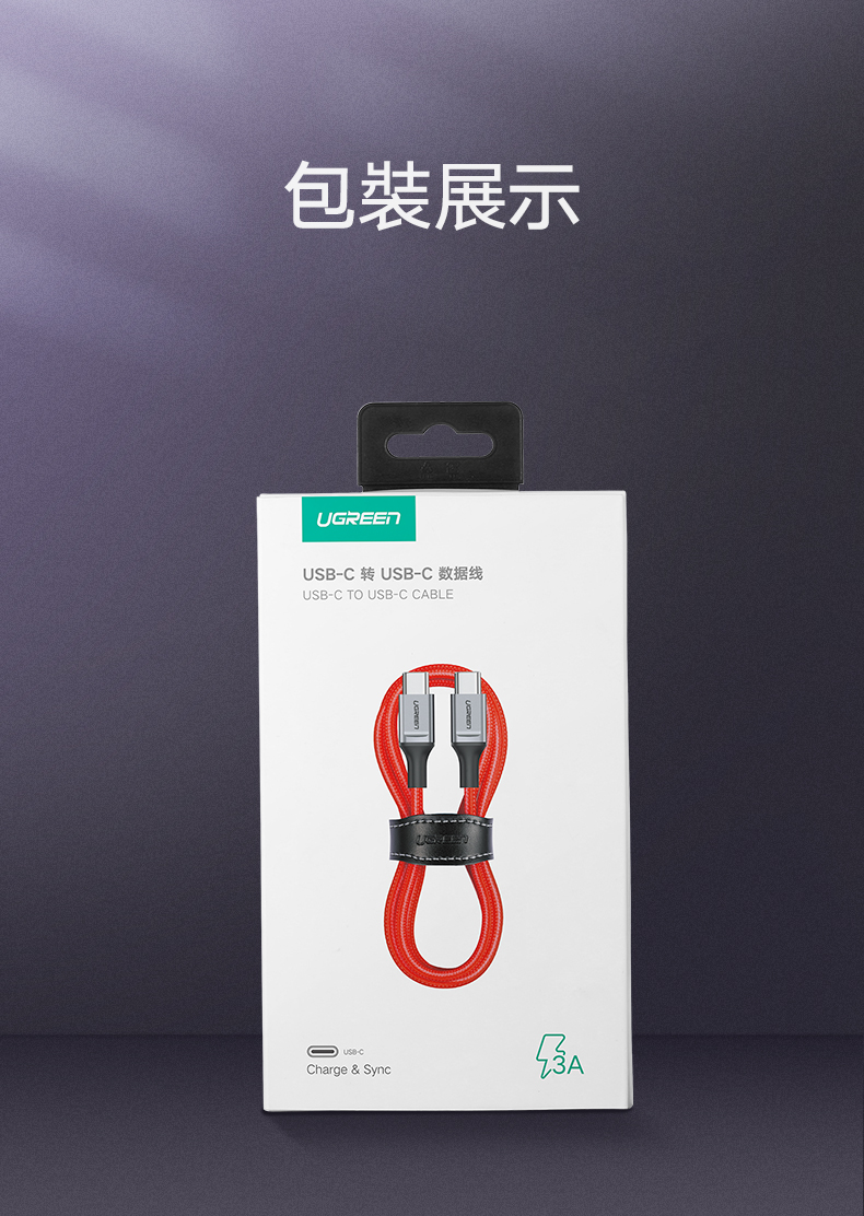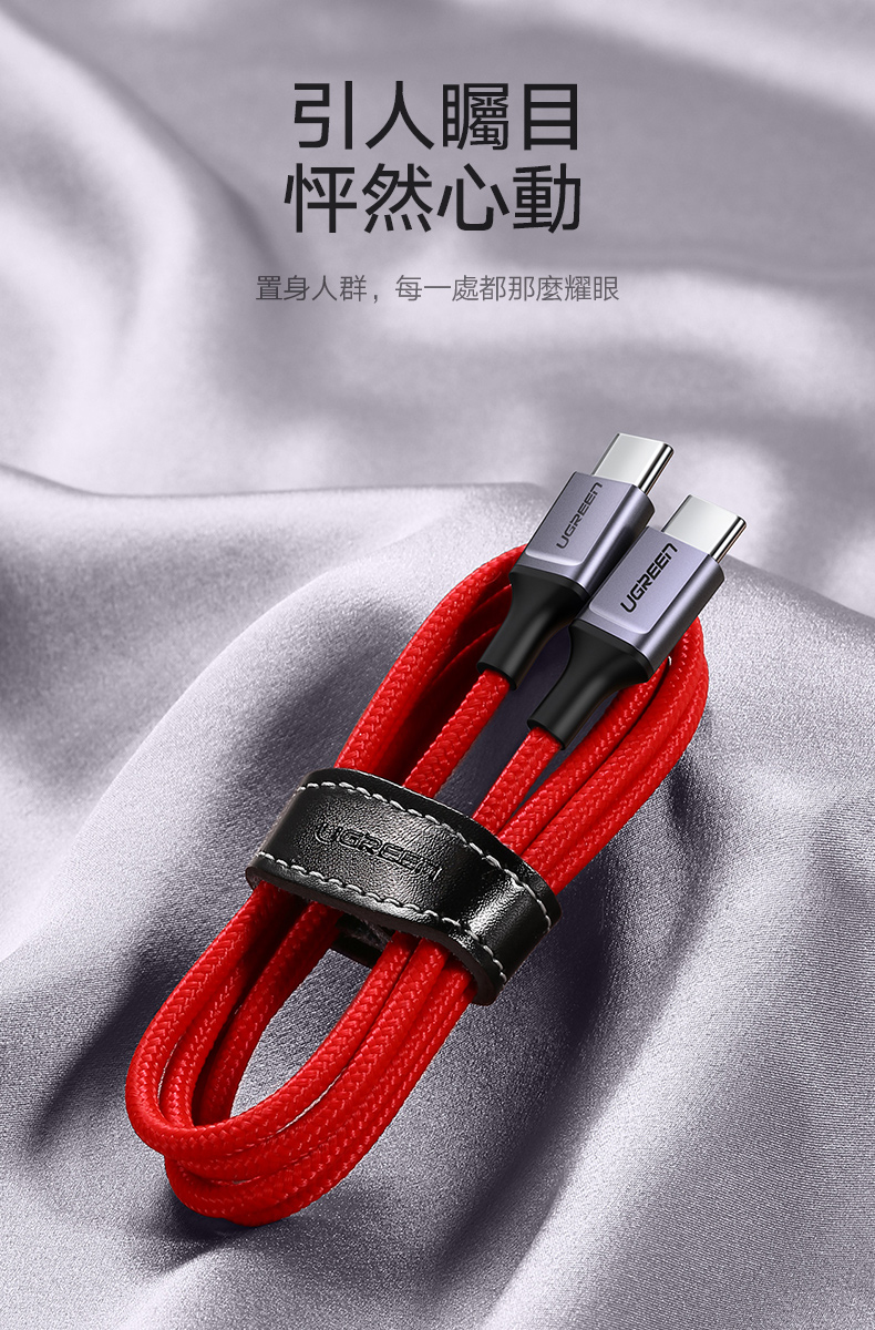 綠聯 1M 3A USB Type-C 公對公 快充傳輸線 收納皮帶 PD60W快充版