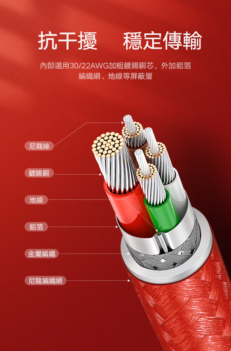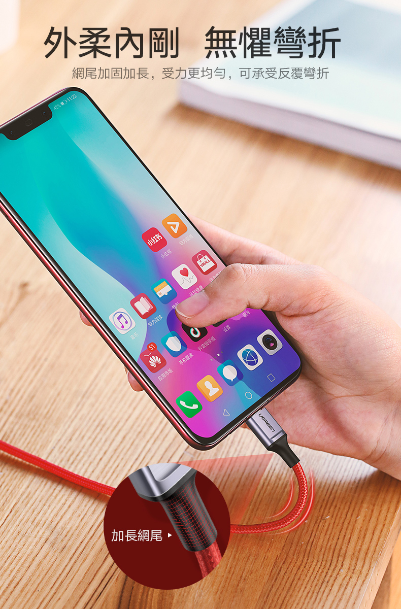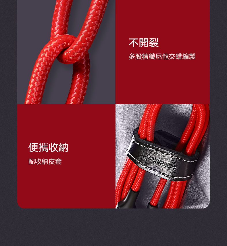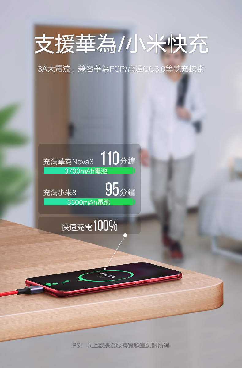 商品特色 ★支援華為/小米快充3A大電流 ★支援PD60W/45W/18W快充快速續航 ★便攜收納附收納皮套 ★網尾加固加長可承受反覆彎折,多股精織尼龍交錯編製不開裂 ★30/22AWG加粗鍍錫銅芯穩定傳輸 ★一體拉伸而成接頭更牢固 ★充電快速穩定