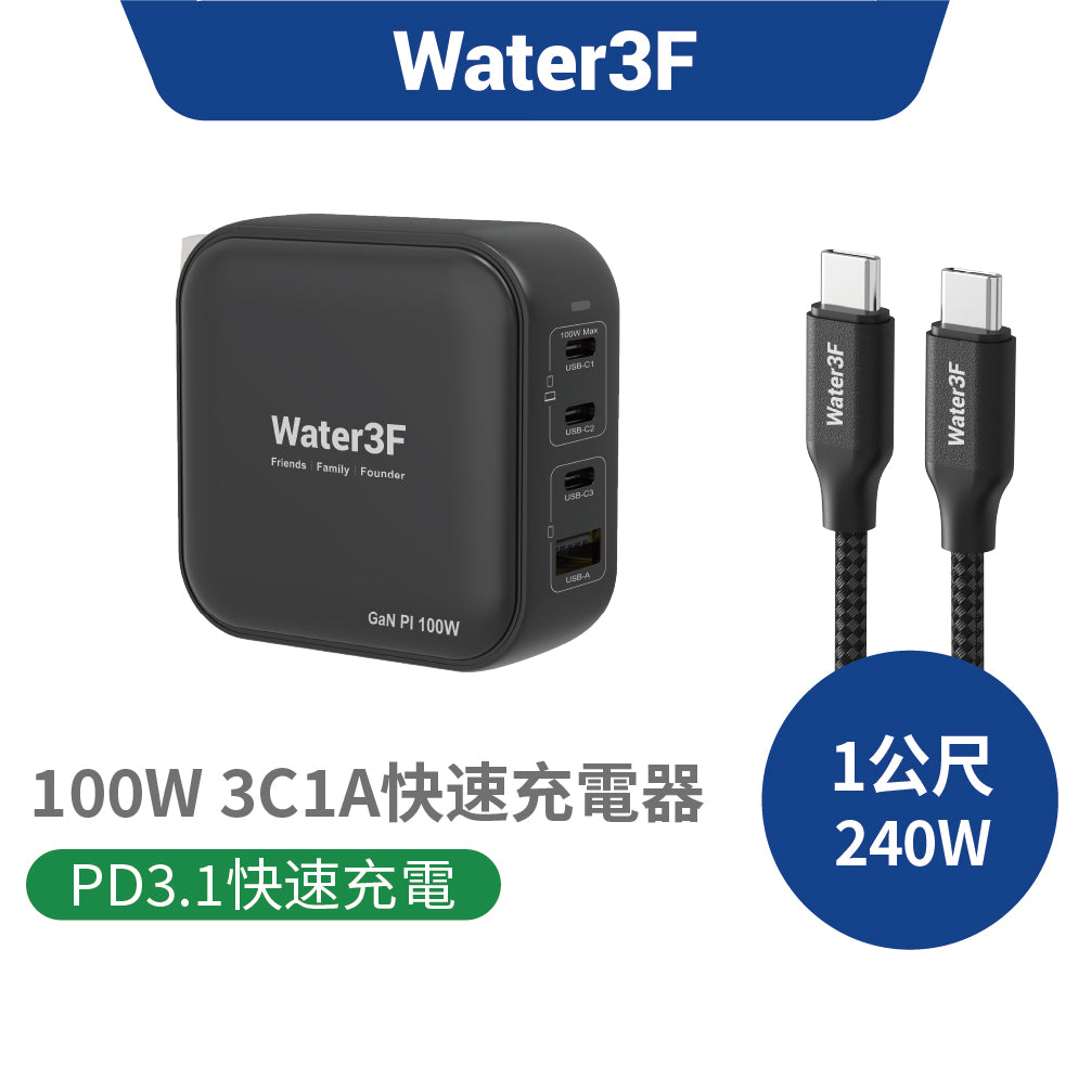 Water3F 165 / 100W 4孔GaN快速充電器 3C1A版