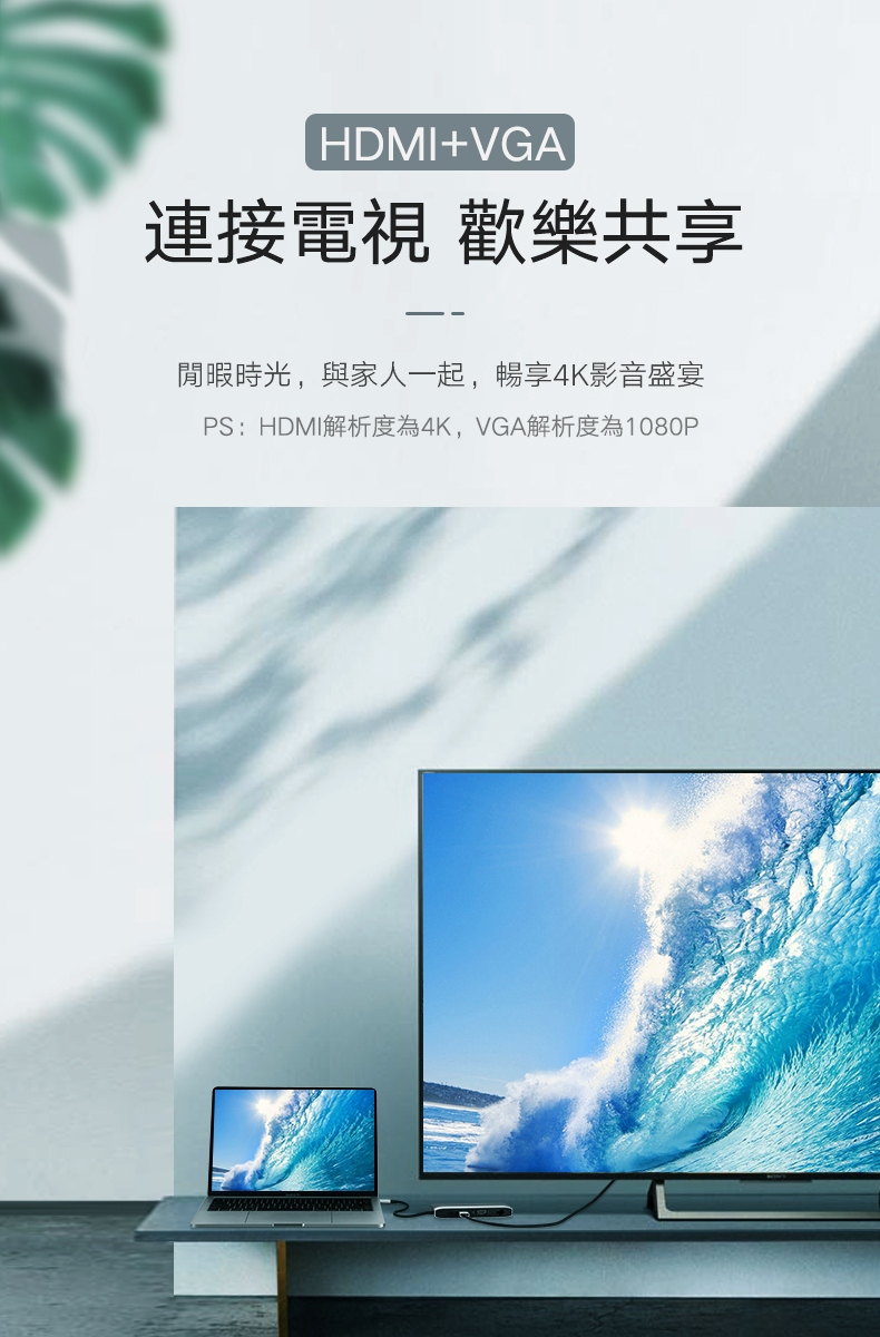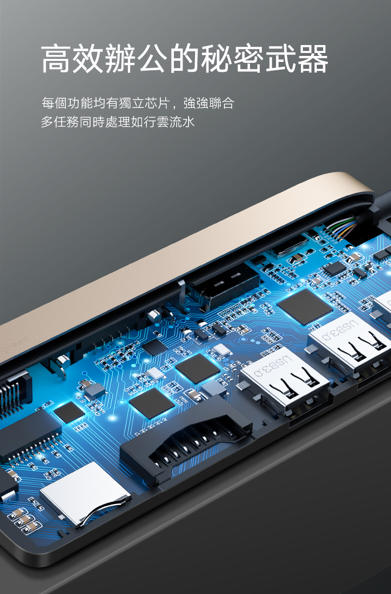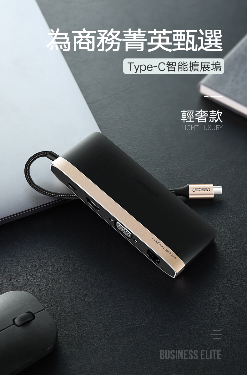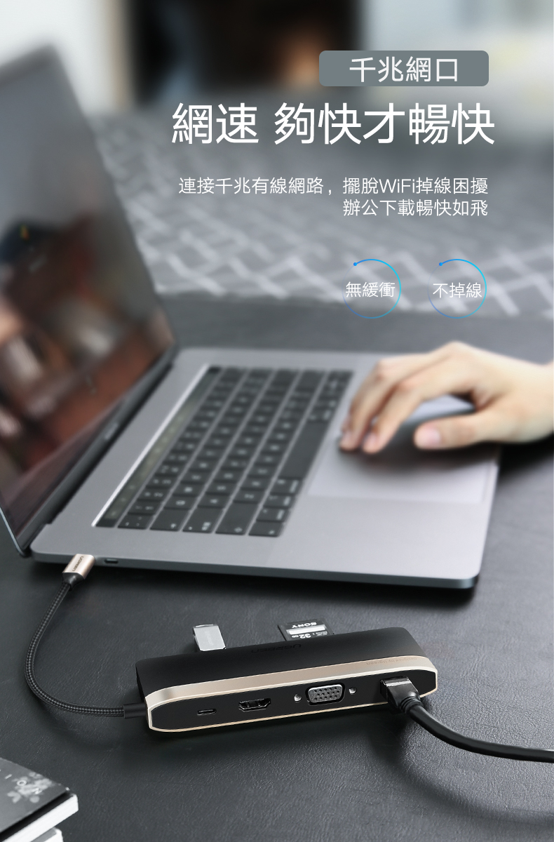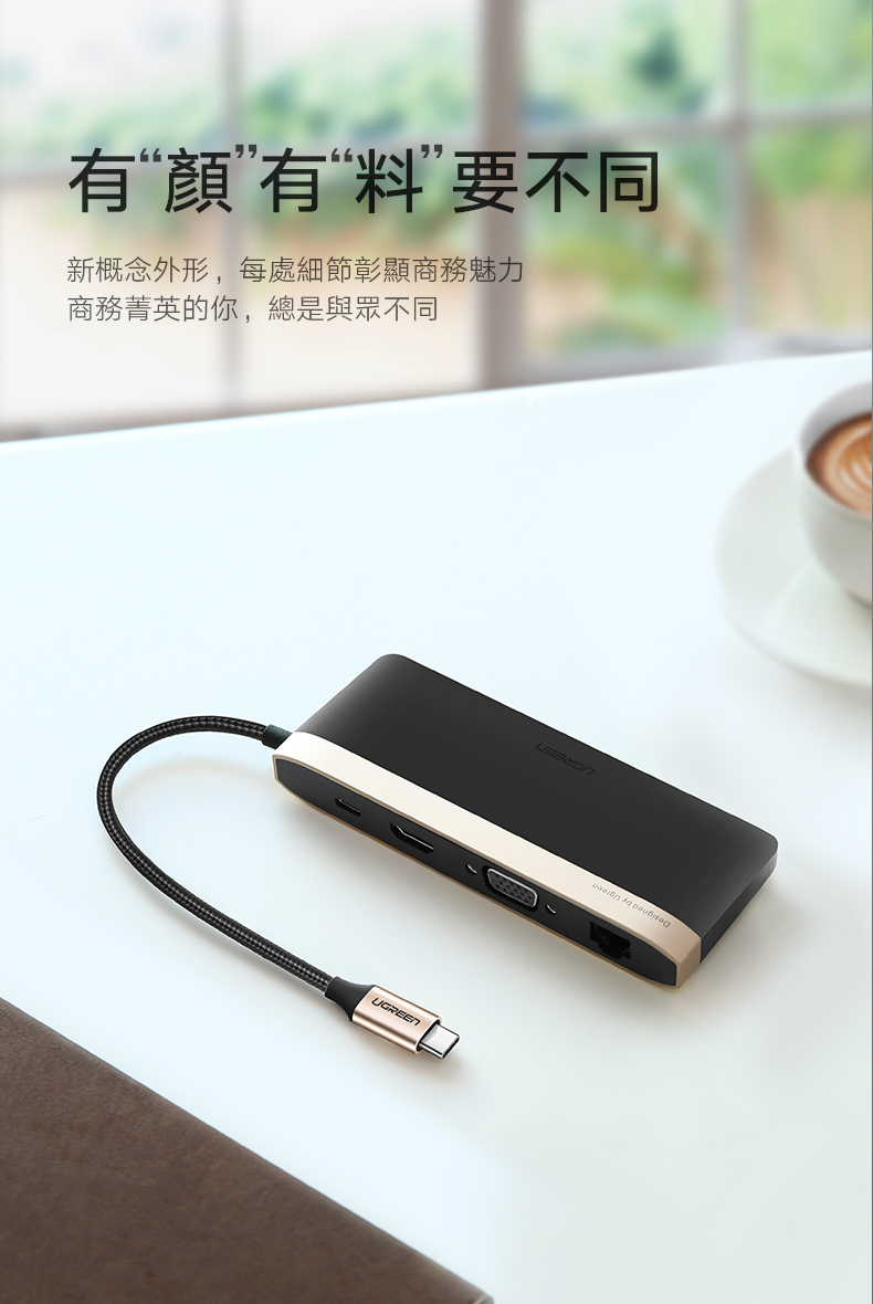[拆封新品/福利品]綠聯九合一USB-C集線器 4K HDMI/VGA/USB3.0/SD/TF/PD充電/GigaLAN網路卡