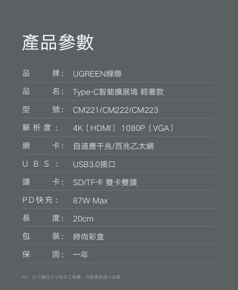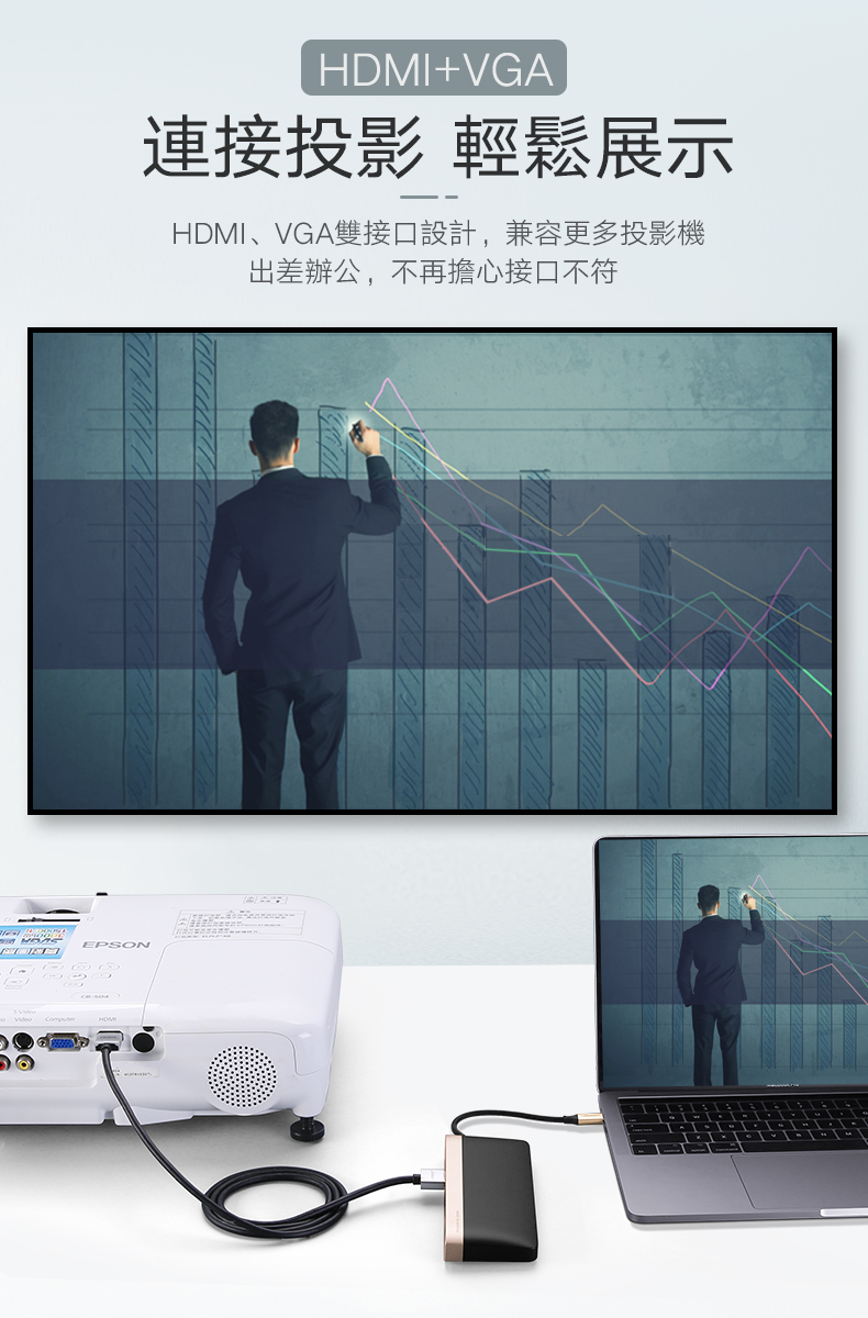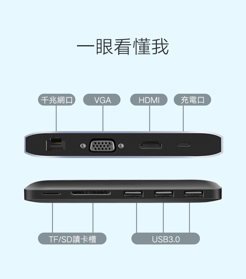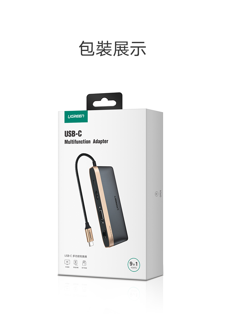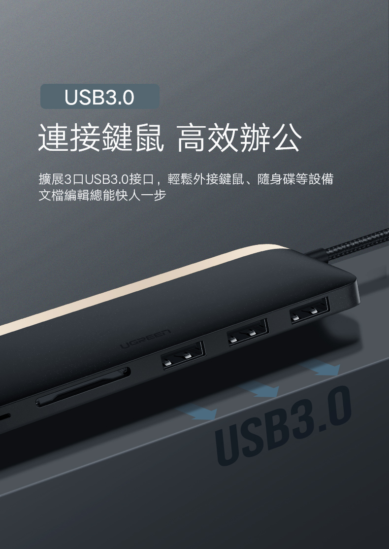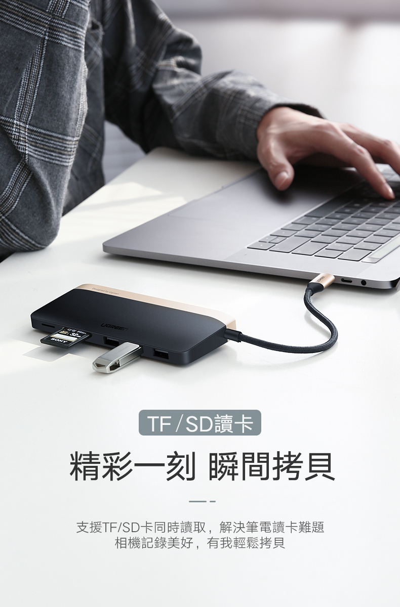 [拆封新品/福利品]綠聯九合一USB-C集線器 4K HDMI/VGA/USB3.0/SD/TF/PD充電/GigaLAN網路卡