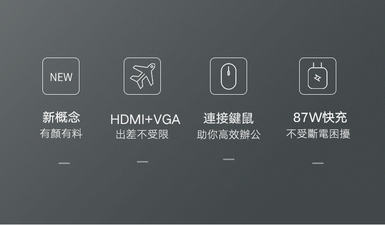 【商品特色】 ★BSMI許可字號:D45310 ★HDMI+VGA連接投影/電視輕鬆展示 ★連接鍵鼠助你高效辦公 ★87W快充不受斷電困擾 ★千兆網口夠快才暢快 ★TF/SD讀卡精彩一刻瞬間拷貝 ★精織尼龍線身防火阻燃外殼 ★獨立芯片多任務同時處理