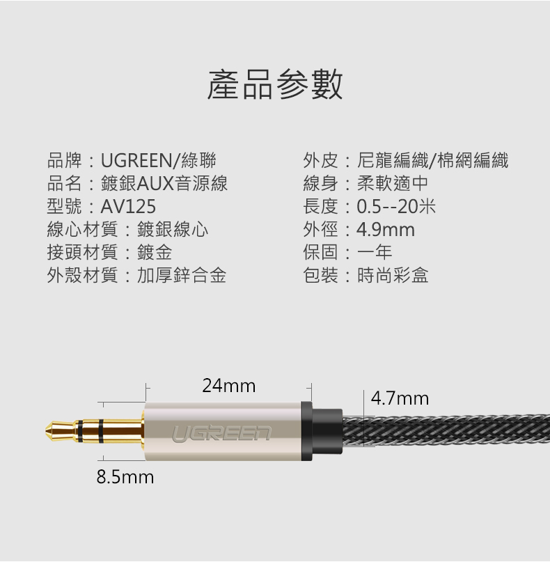 [拆封新品/福利品]綠聯 3.5mm AUX 發燒級音源線