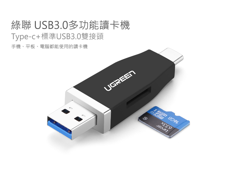綠聯 TF讀卡機Type-C USB3.0手機電腦兩合一OTG