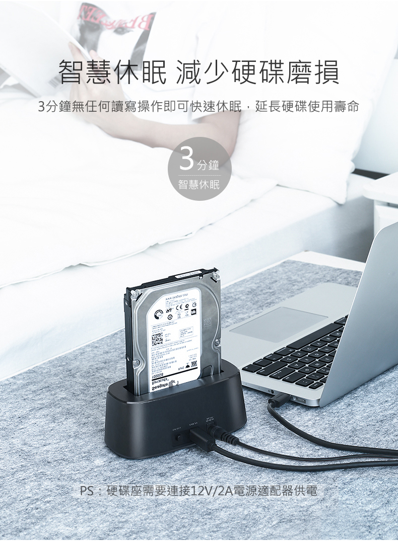 【商品特色】 ★免工具即插即用 ★USB3.0傳輸快 ★搭配12V/2A電源供電足 ★12TB硬碟輕鬆讀取 ★立式散熱為硬碟降溫 ★智慧休眠減少硬碟磨損
