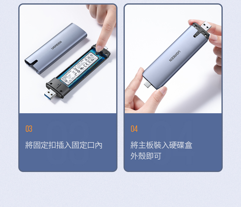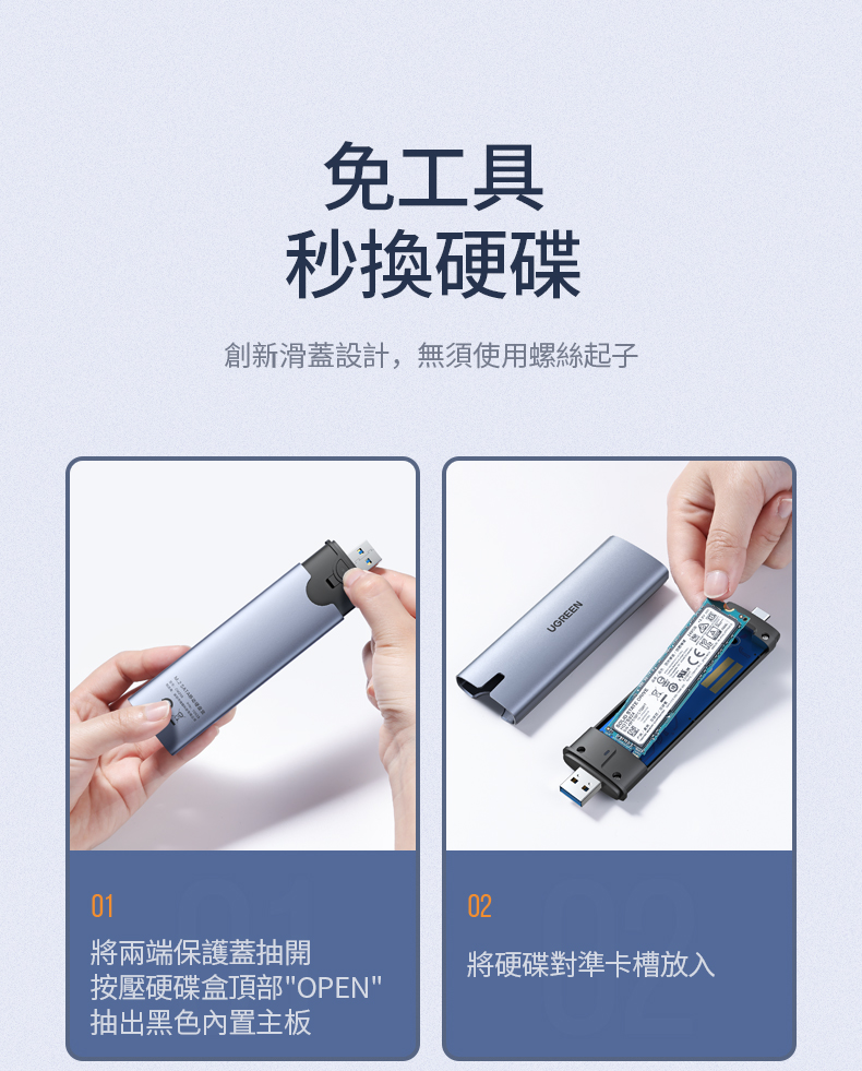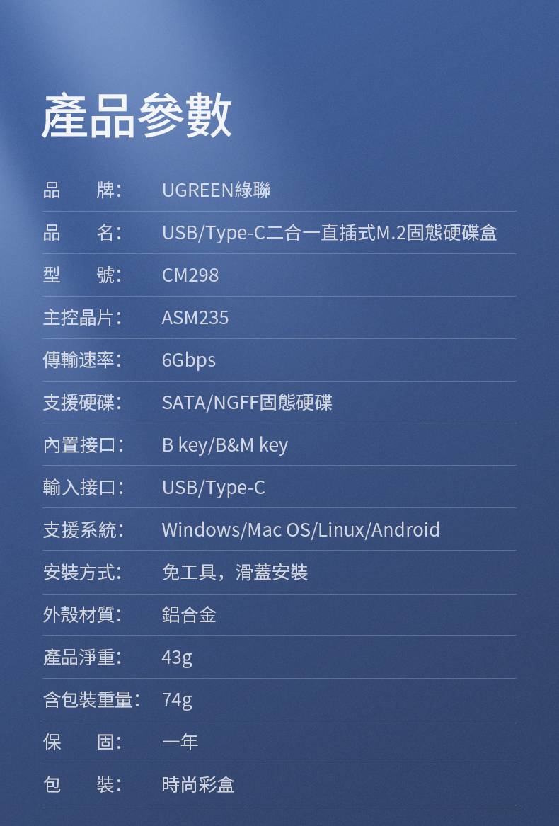 ◆USB/Type-C雙接口二合一 ◆1GB電影2秒傳送完畢 ◆精緻小巧 輕鬆便攜 ◆免工具秒安裝 ◆ASM235CM主控晶片 穩定快傳 ◆此商品為SATA版本使用