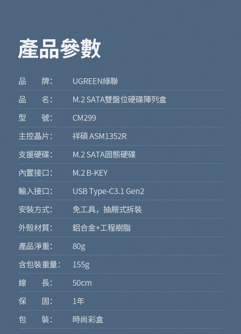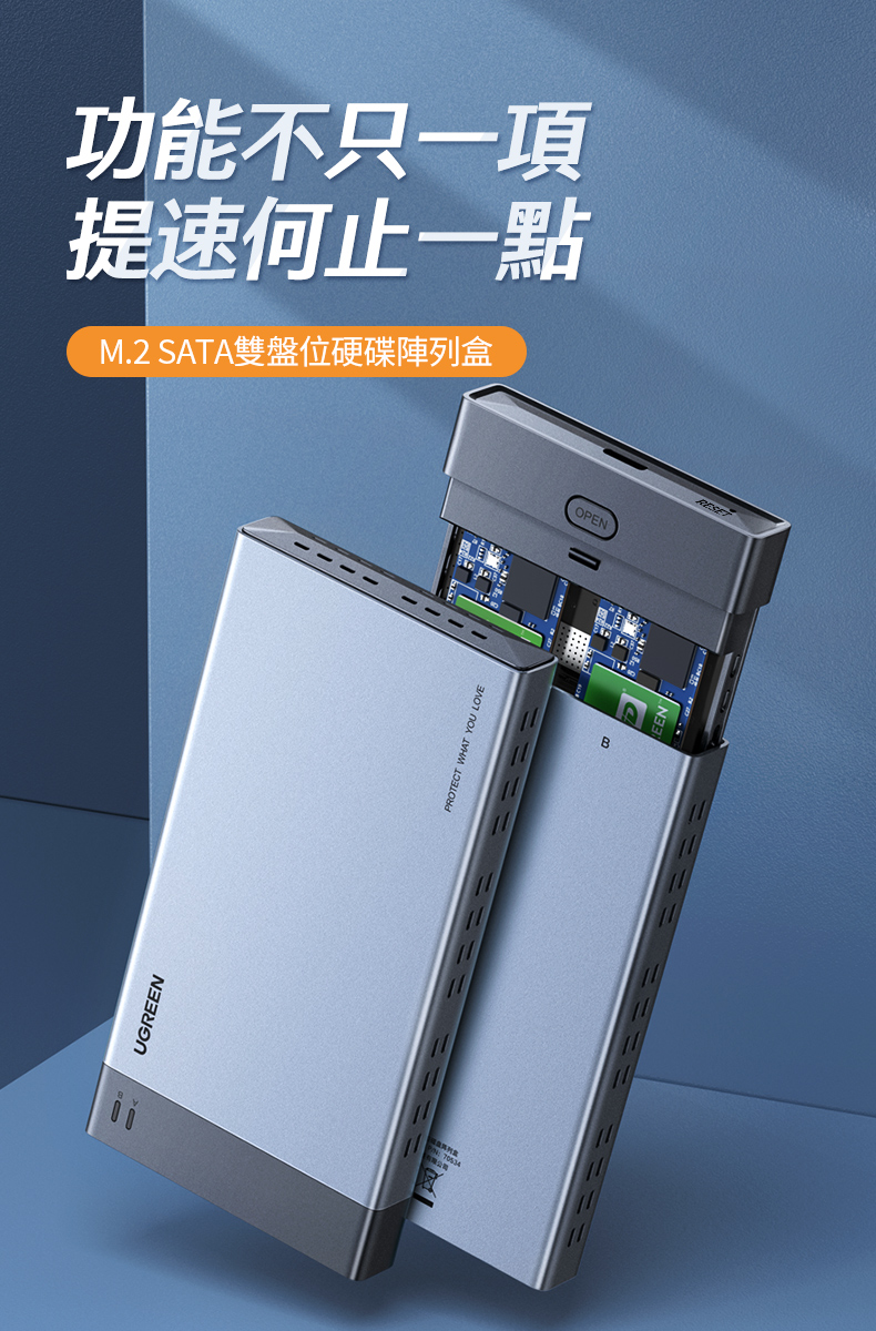 綠聯 M.2雙硬碟外接盒 台灣祥碩晶片 4種RAID模式 鋁合金SATA版