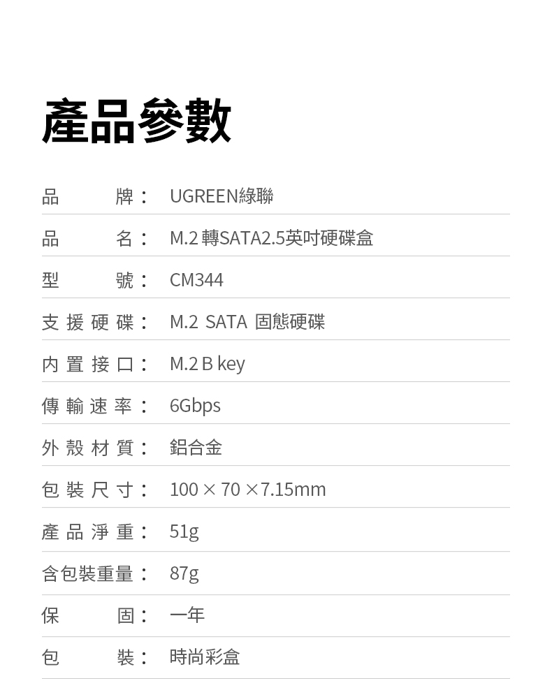 綠聯 M.2轉SATA 2.5硬碟盒 鋁合金SATA版