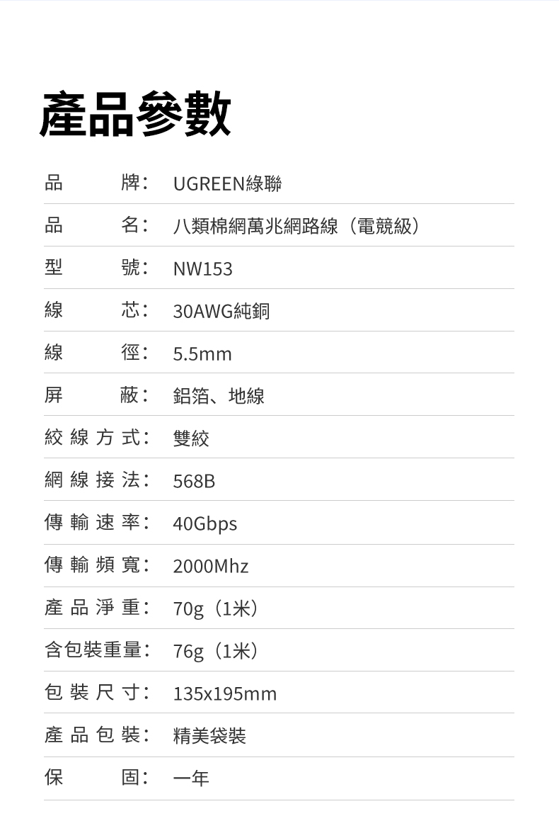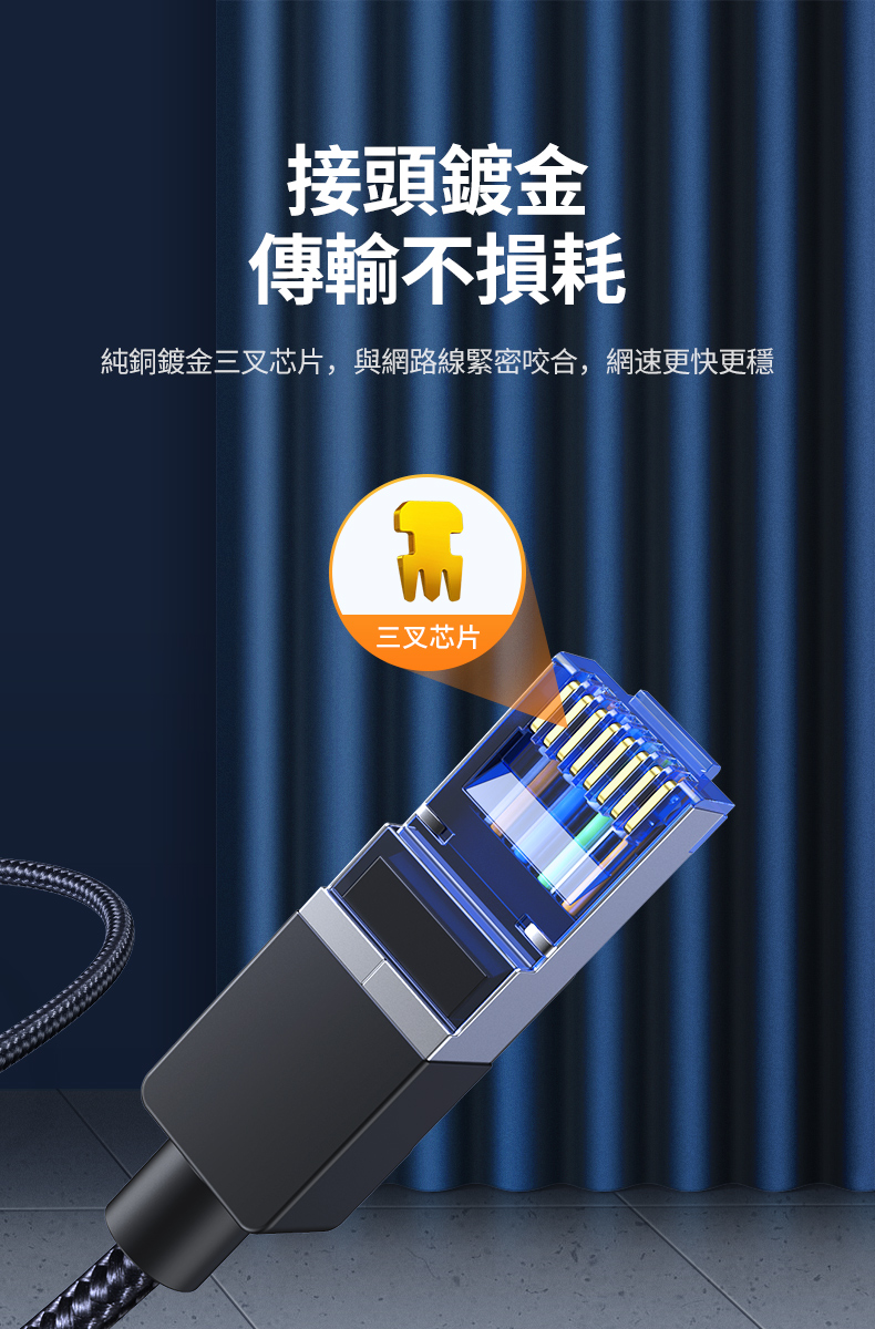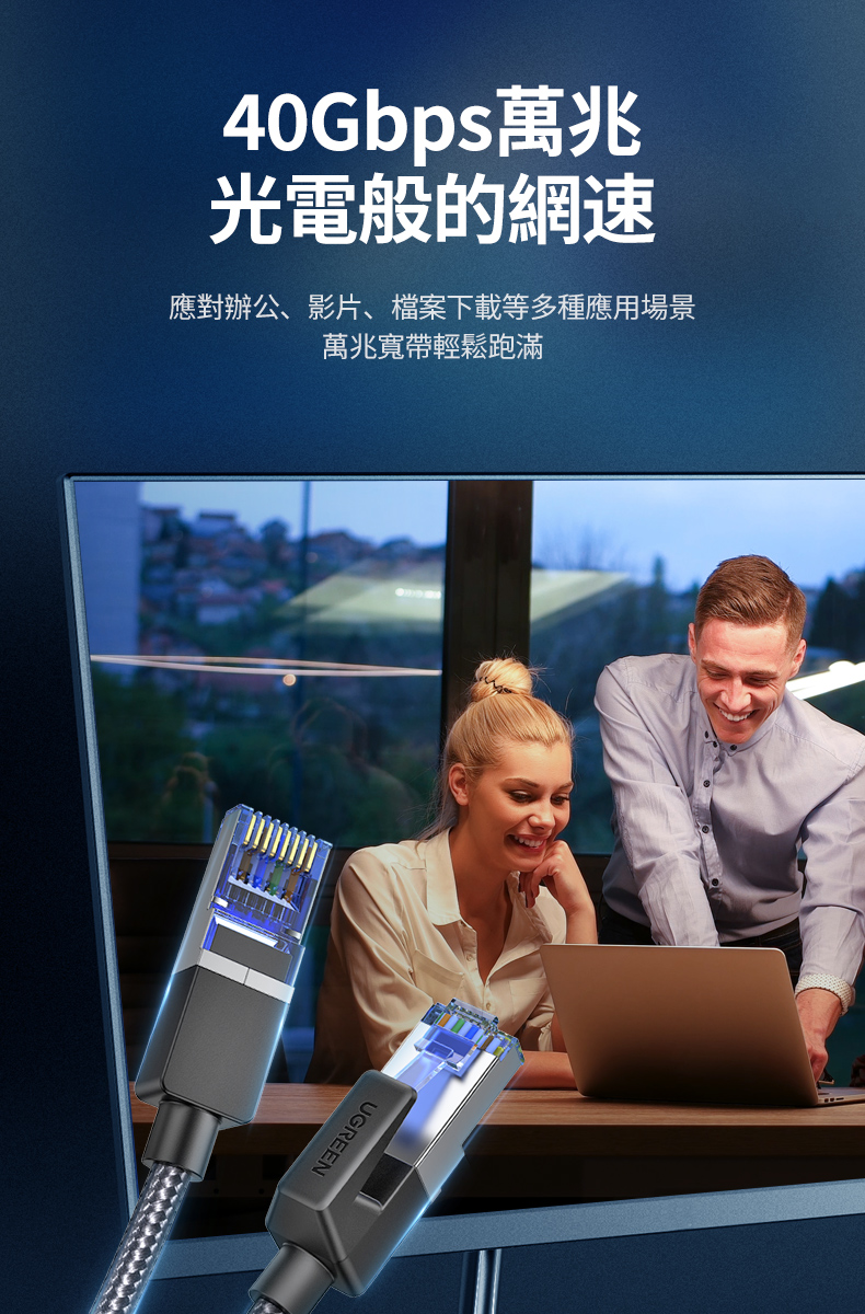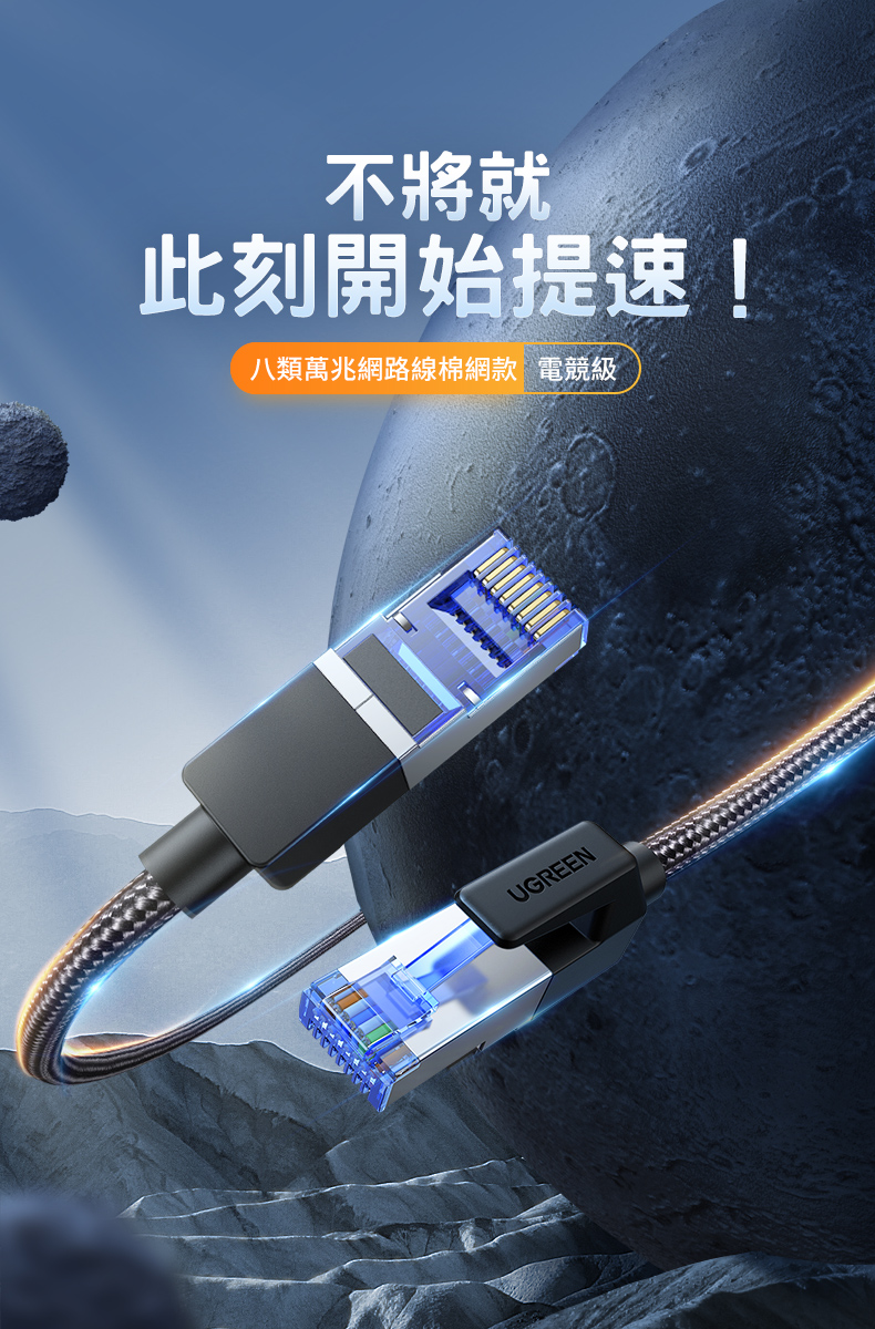 綠聯 40Gbps CAT8網路線 30AWG純銅 光速級 棉網編織版