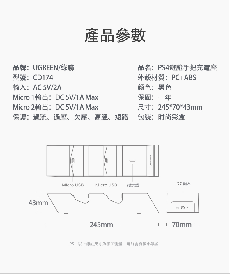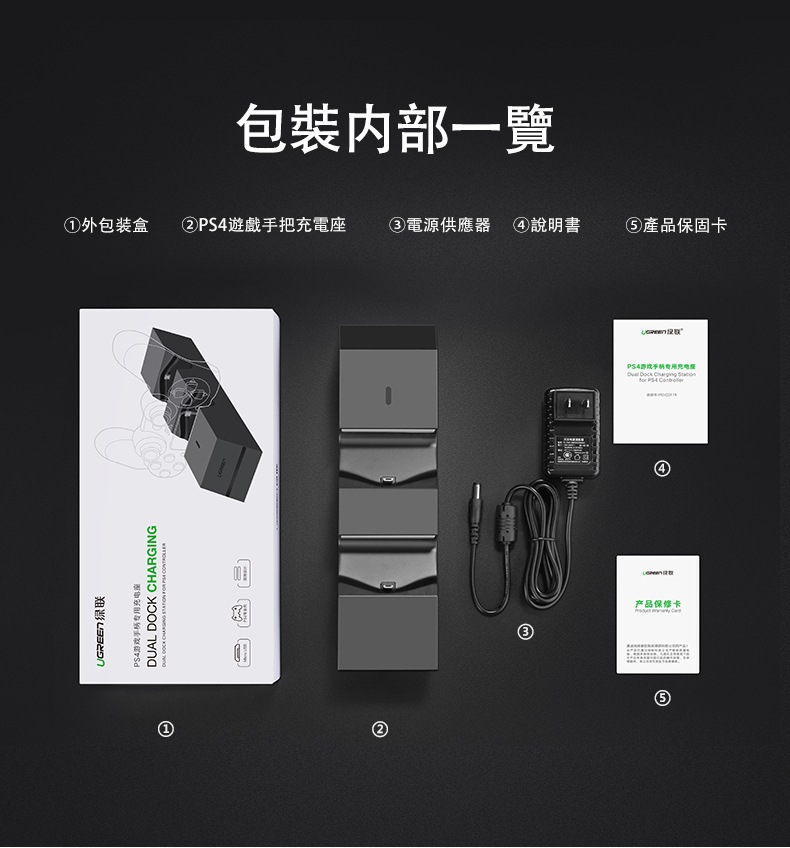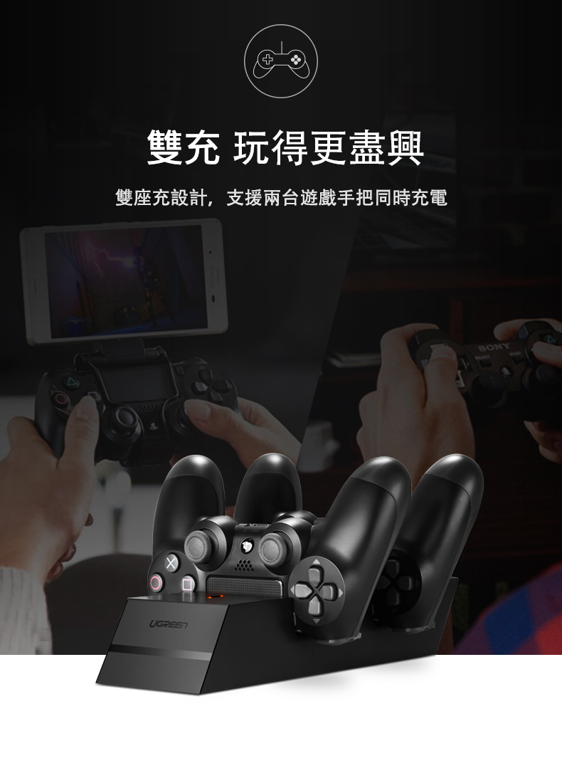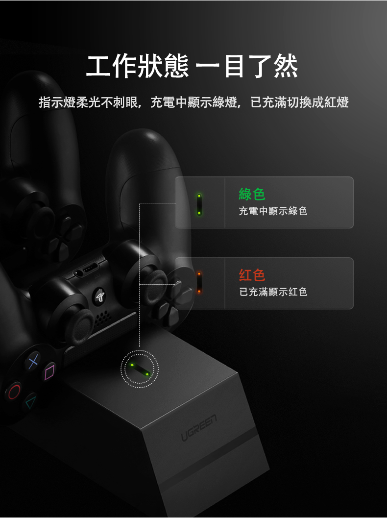 綠聯 PS4雙手把快充充電座