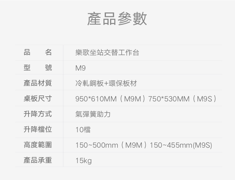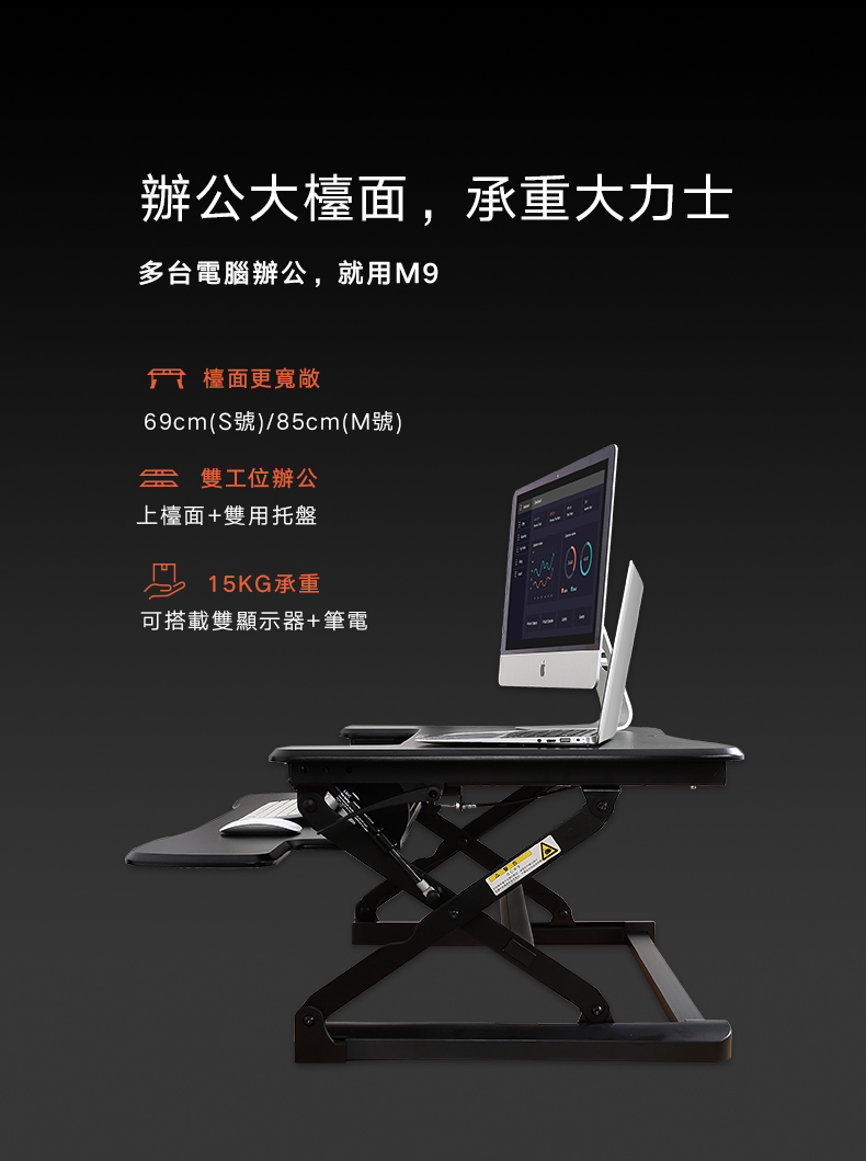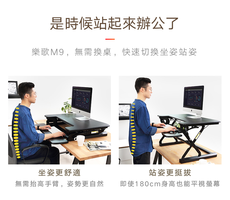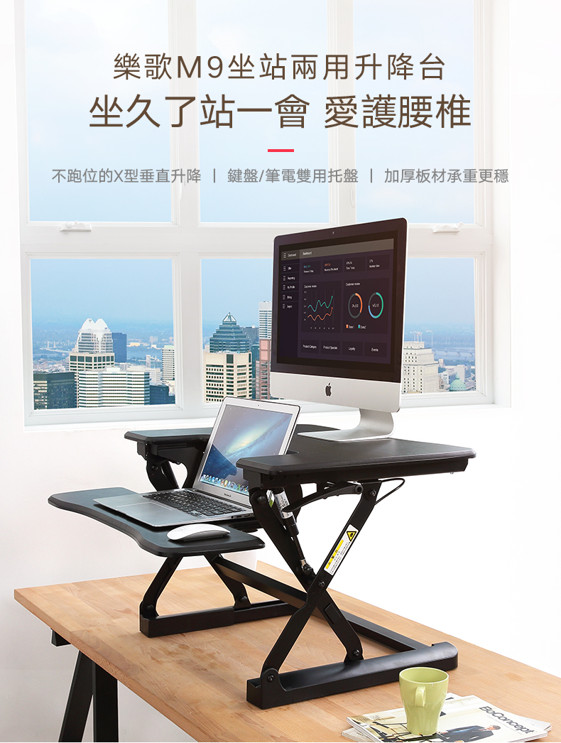 樂歌Loctek 人體工學 坐立交替工作台 M9S雅黑