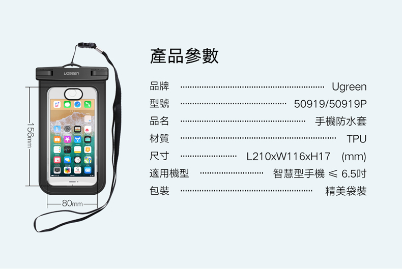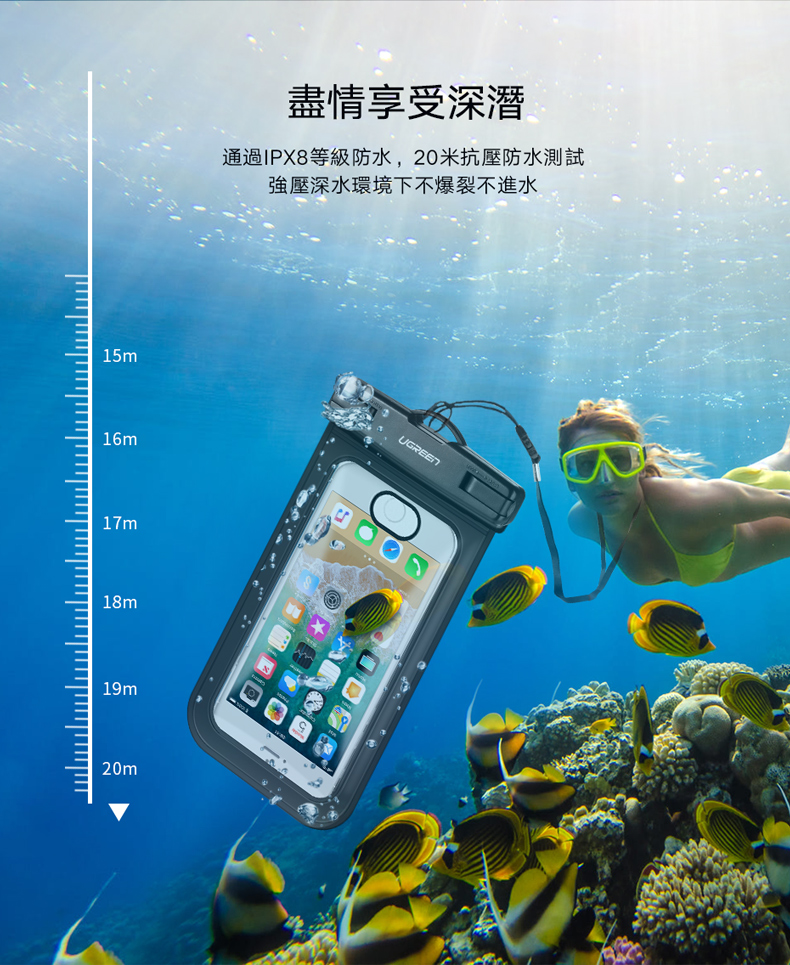 綠聯 手機防水套 6.5吋以下手機通用 支持20公尺防水
