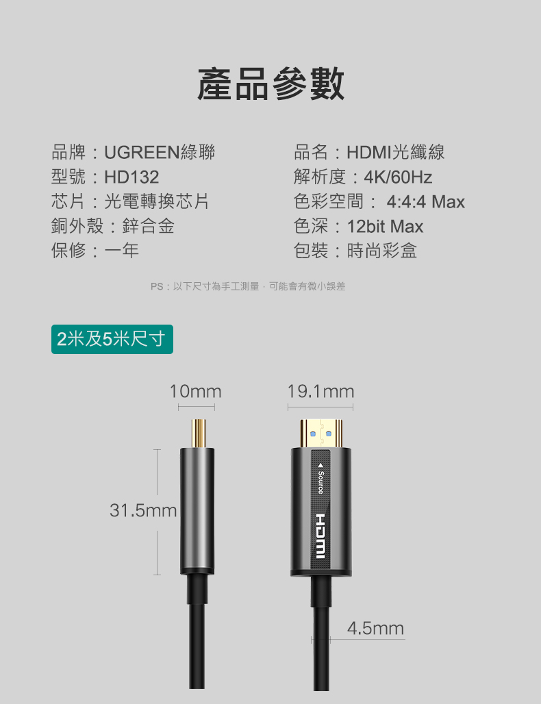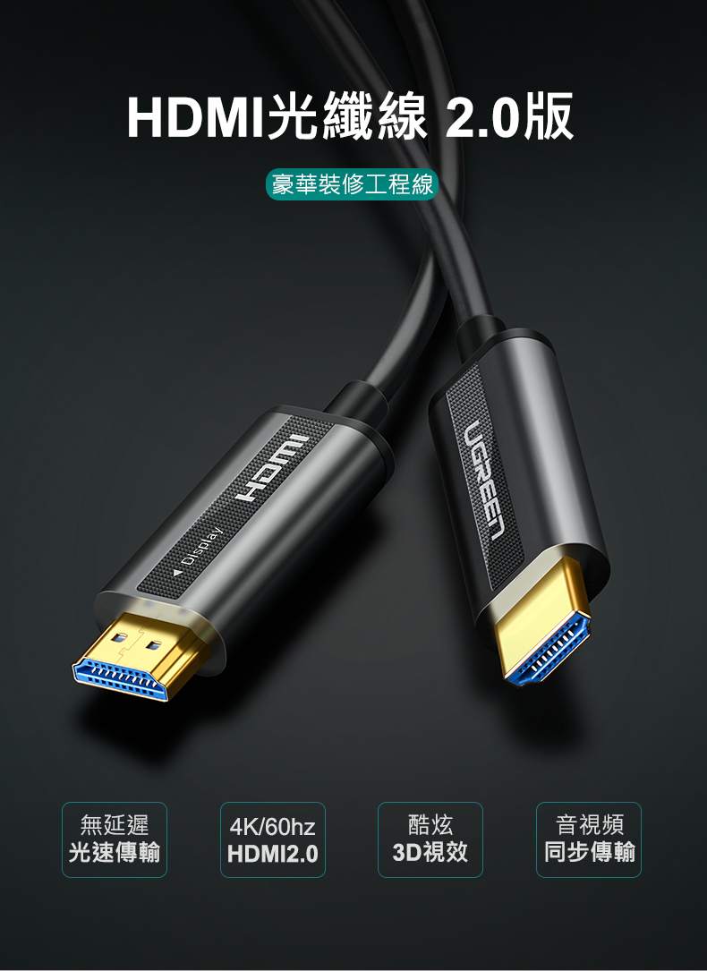 綠聯 10M HDMI2.0 光纖線 4K發燒級