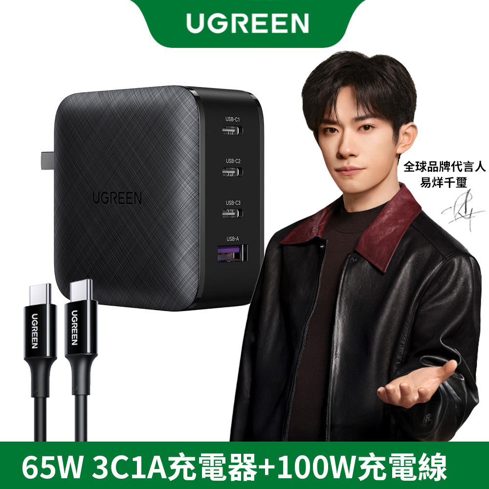 綠聯 65W 3C1A 四孔 GaN 氮化鎵 高速充電器 PD 快充頭 Macbook Pro/iPhone15適用【使用美國PI APPLE晶片】