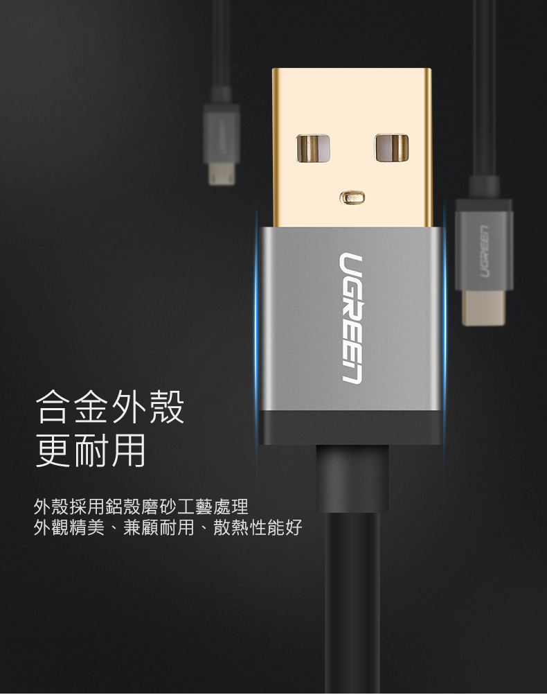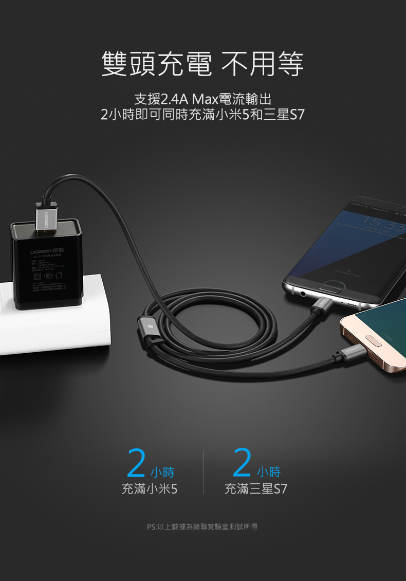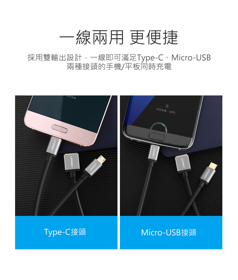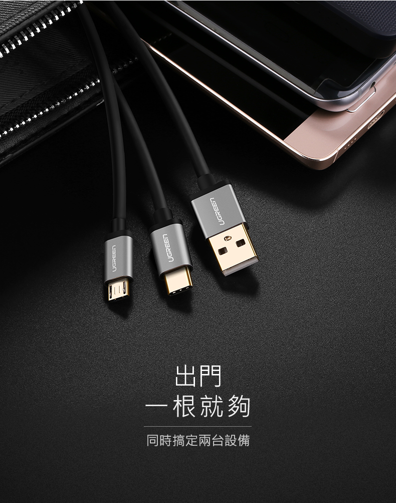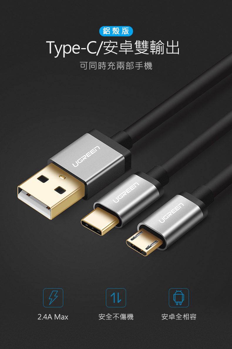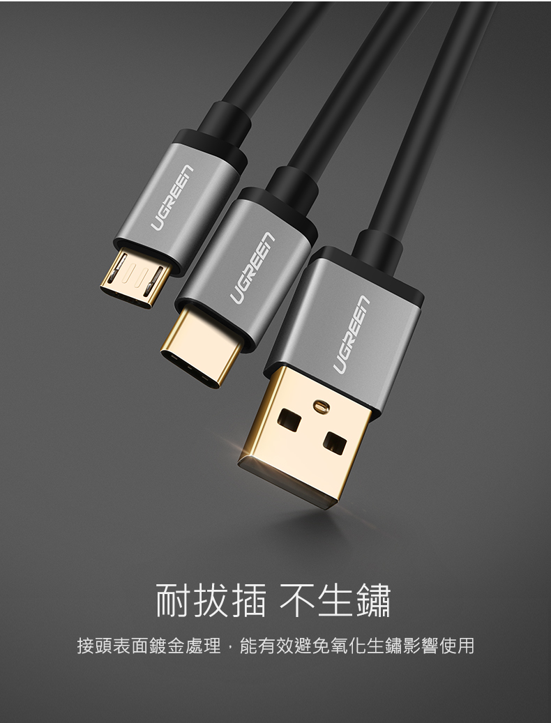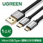 綠聯 1M Micro USB/Type-C雙輸出快充傳輸線