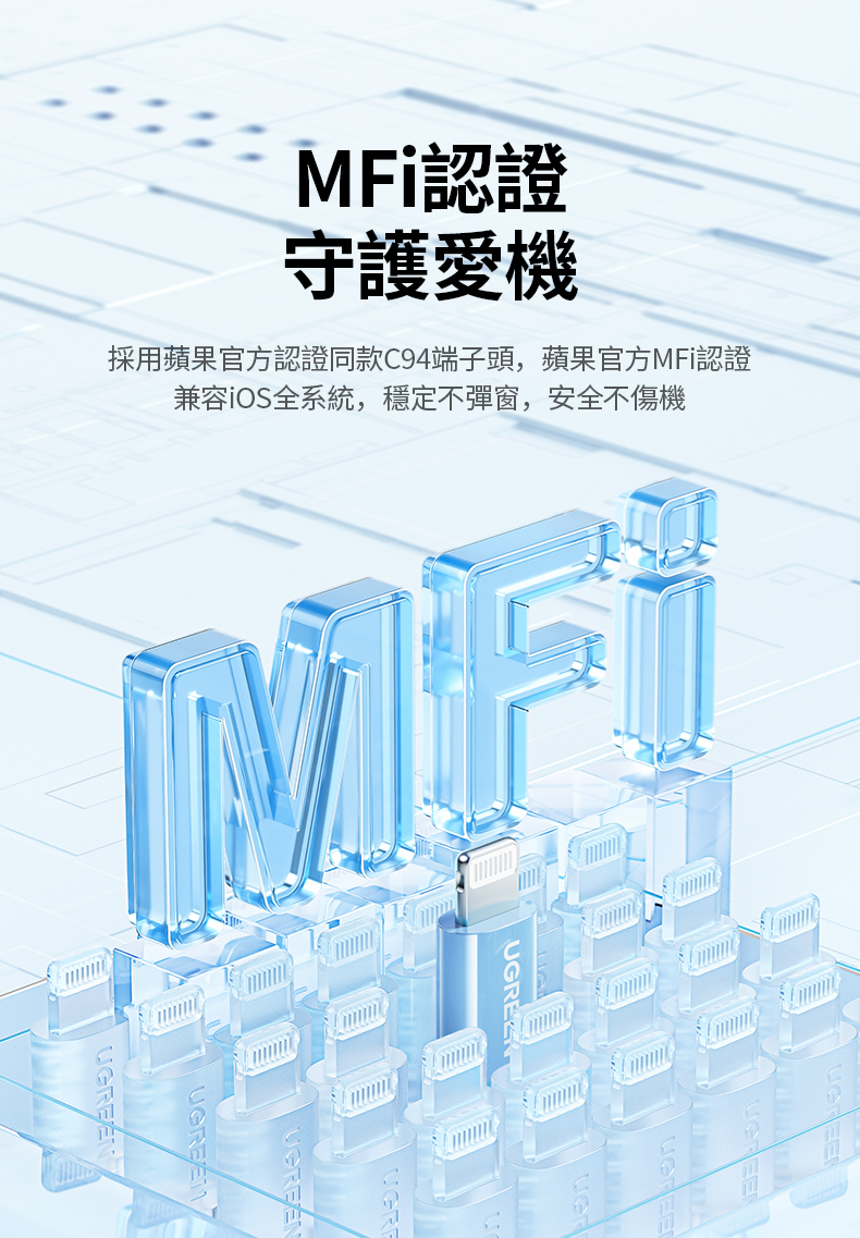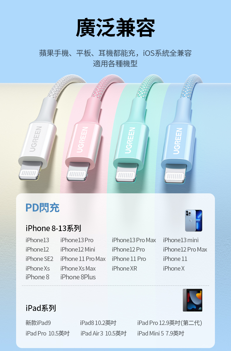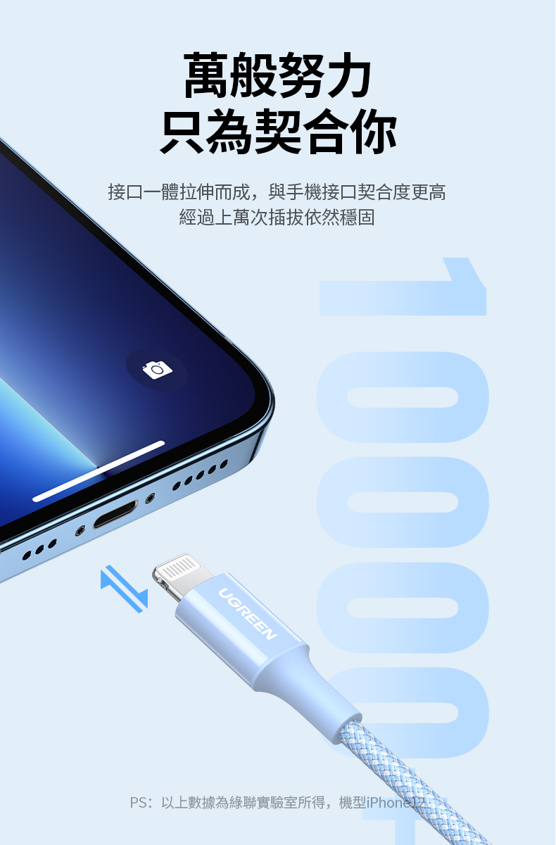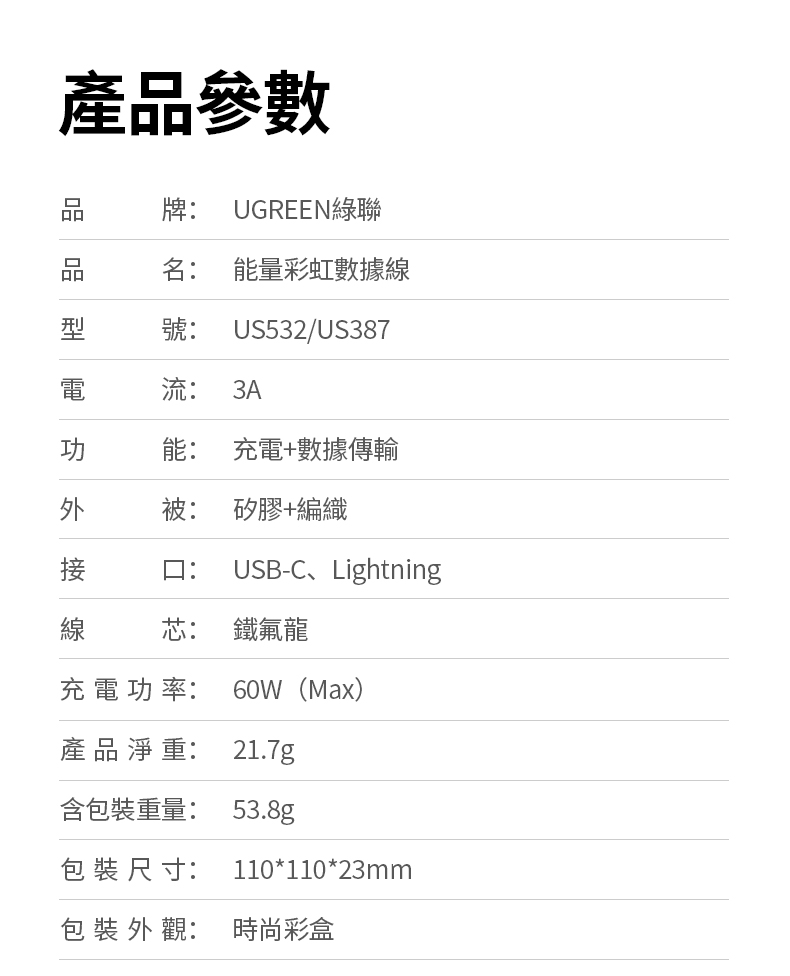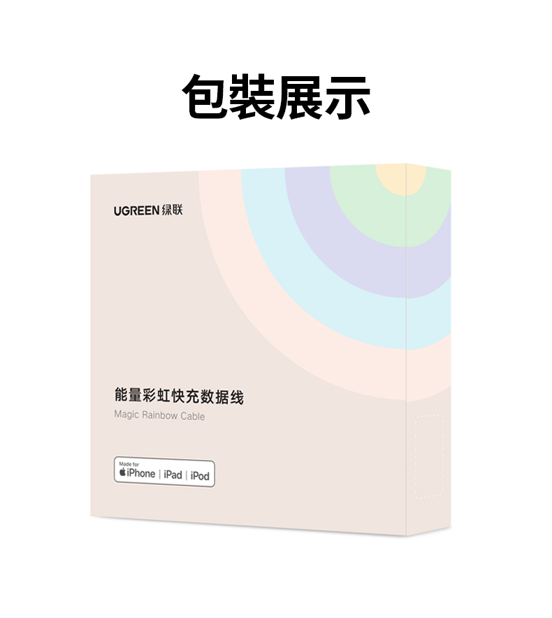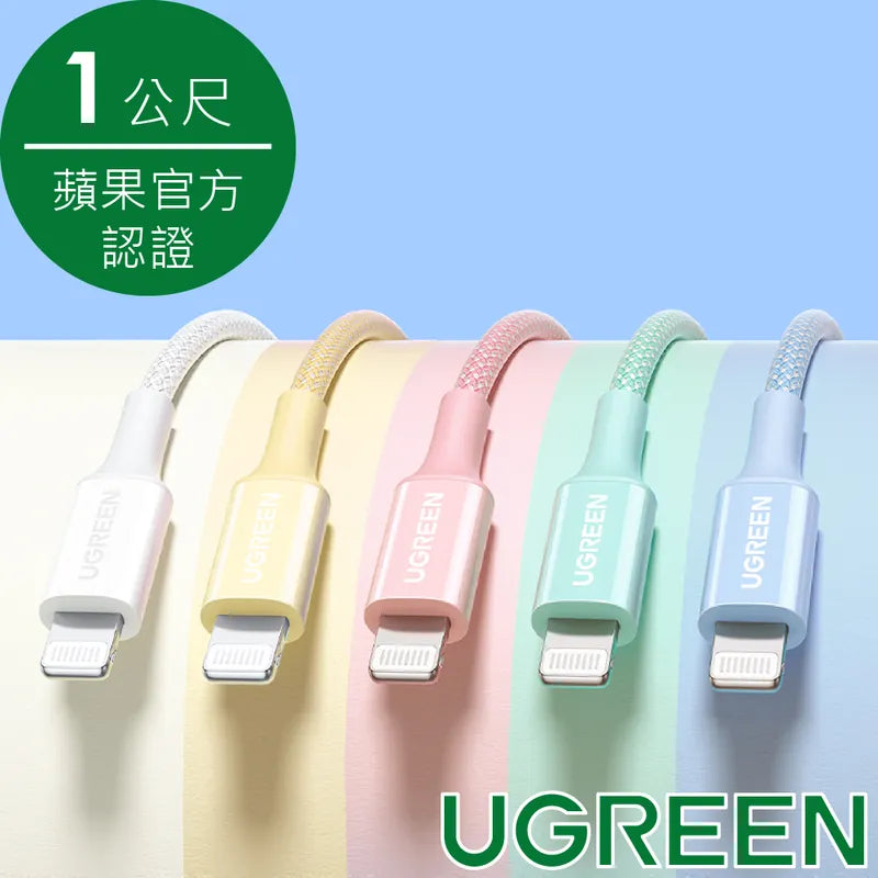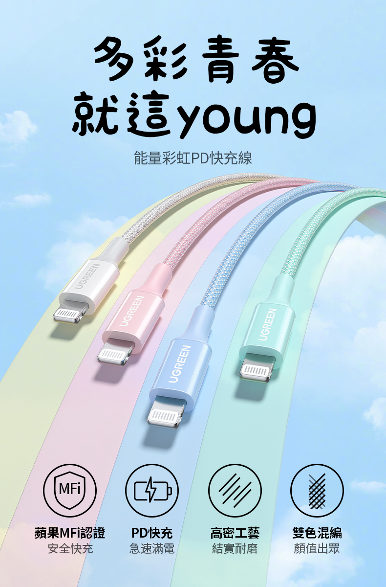綠聯 USB-C to Lightning充電線/傳輸線MFi彩虹編織版