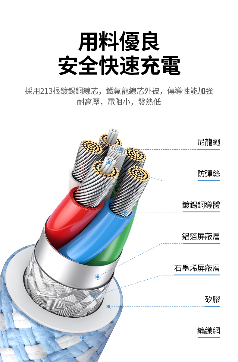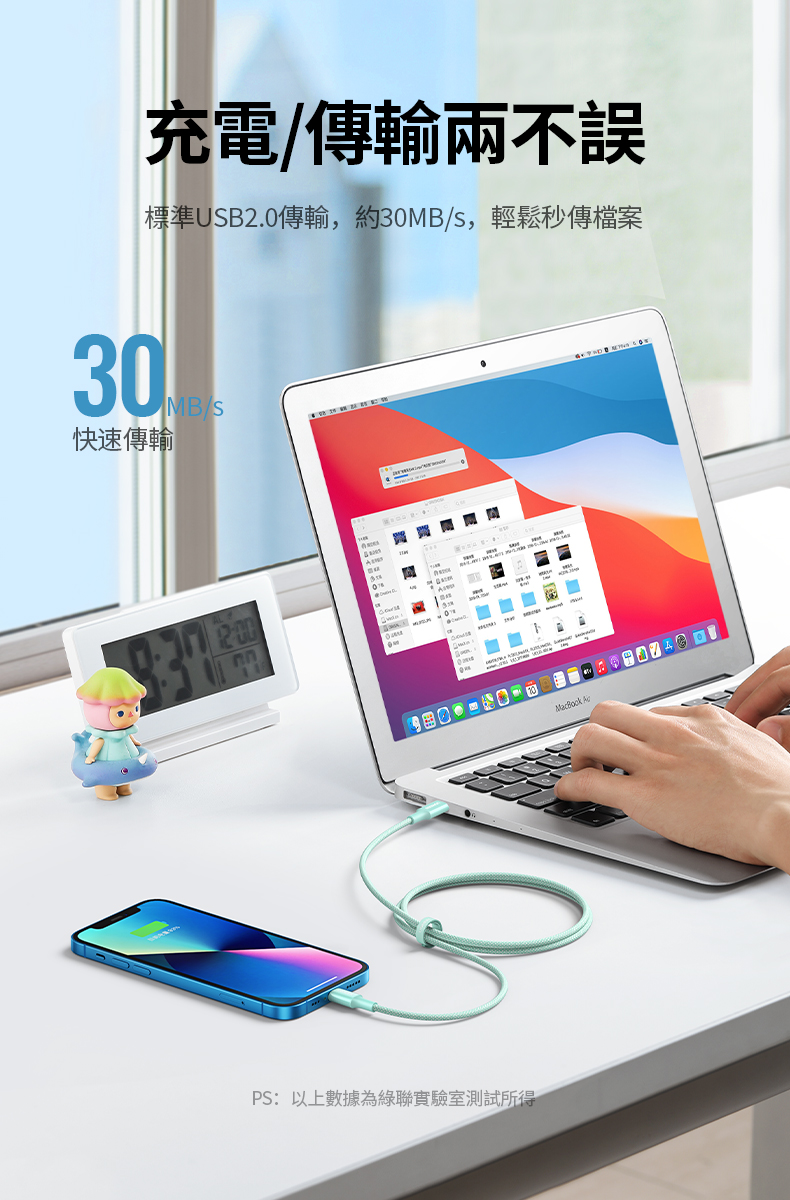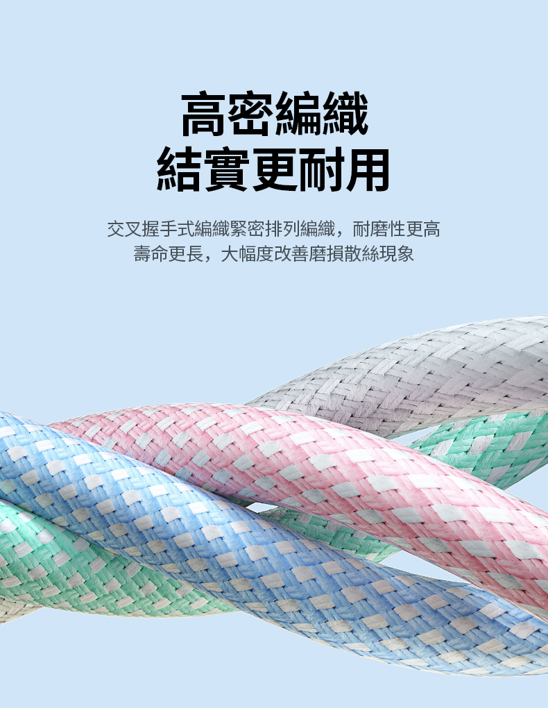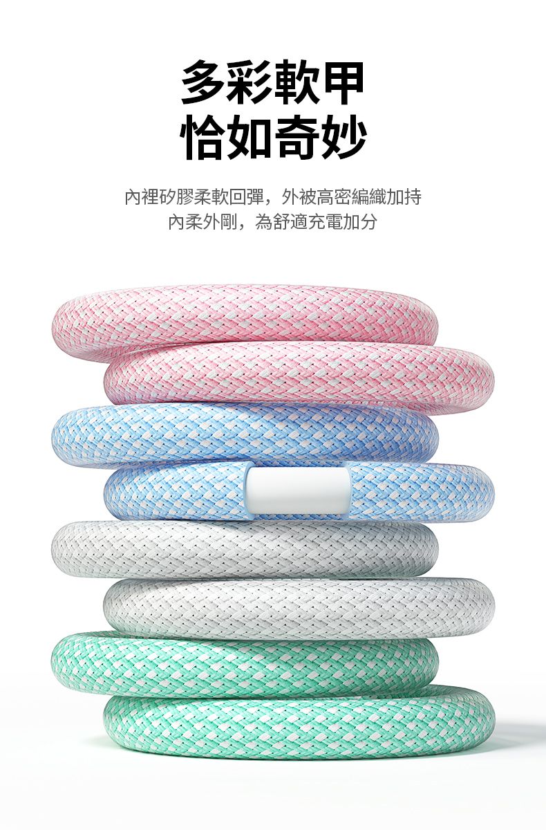 ◆蘋果Mfi認證 安全快充 ◆PD快充 急速滿電 ◆高密工藝 結實耐磨 ◆雙色混編 顏質出眾 ◆接口一體拉伸而成 穩固耐插拔