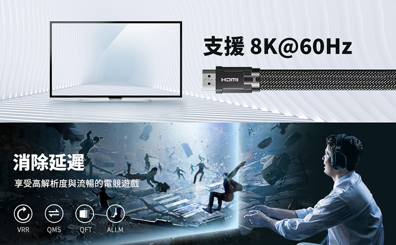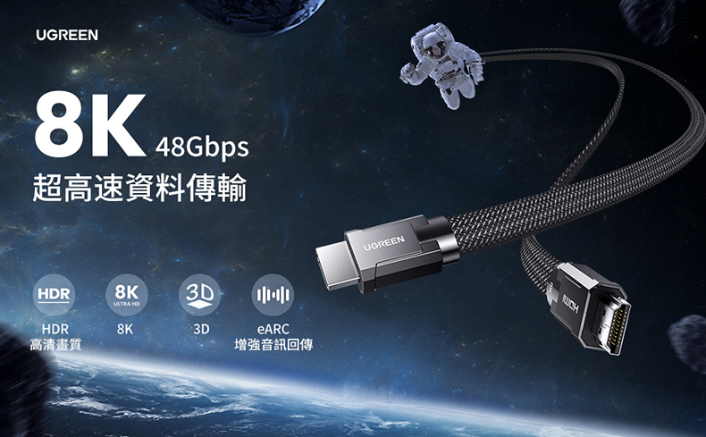 綠聯 8K HDMI2.1傳輸線 金屬殼編織線 收納平整版