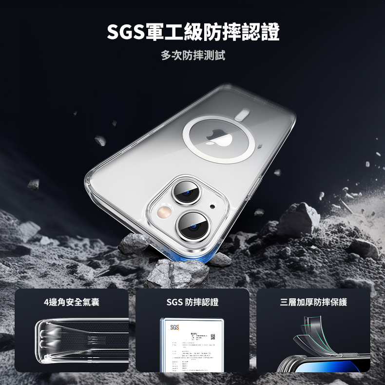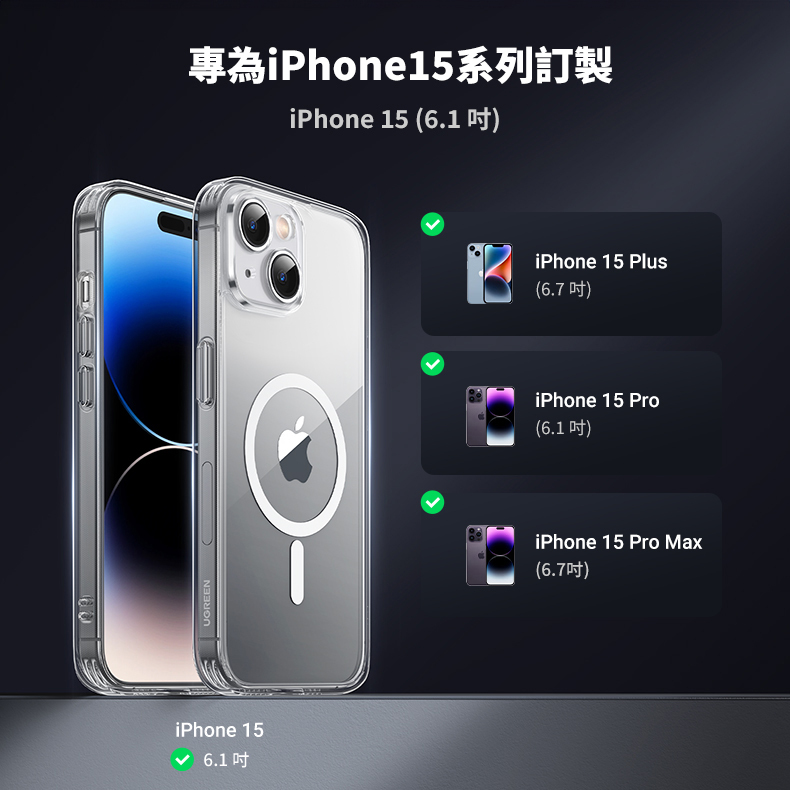 綠聯 iPhone 15系列 超強磁吸透明防摔手機殼 Magsafe專用