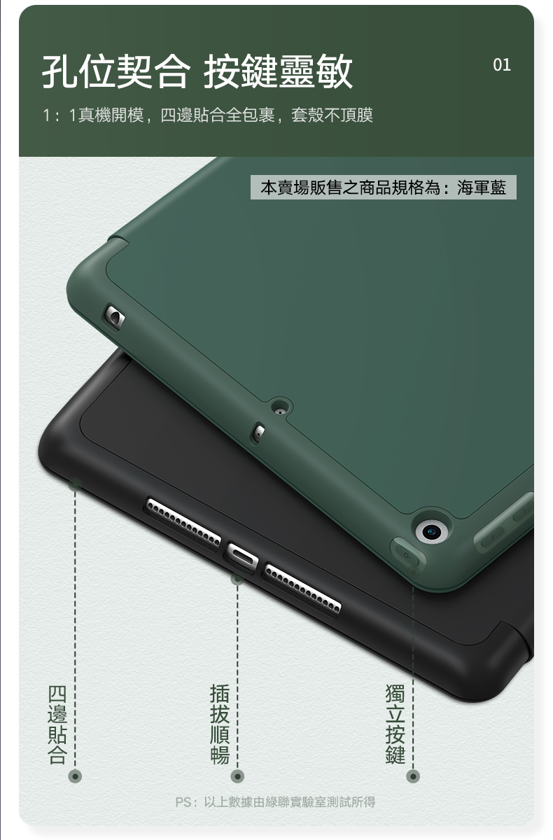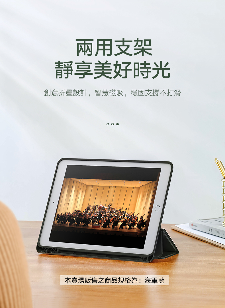 綠聯 iPad Air 10.5英寸保護套 帶筆槽三折款 海軍藍