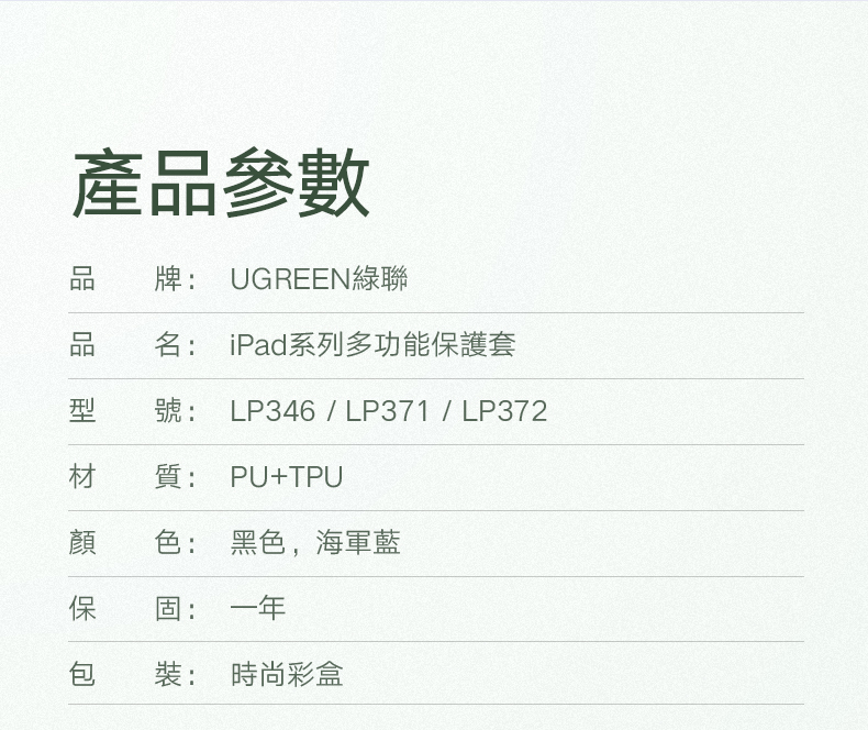 綠聯 iPad Pro(2020)12.9英寸保護套 帶筆槽三折款 黑色