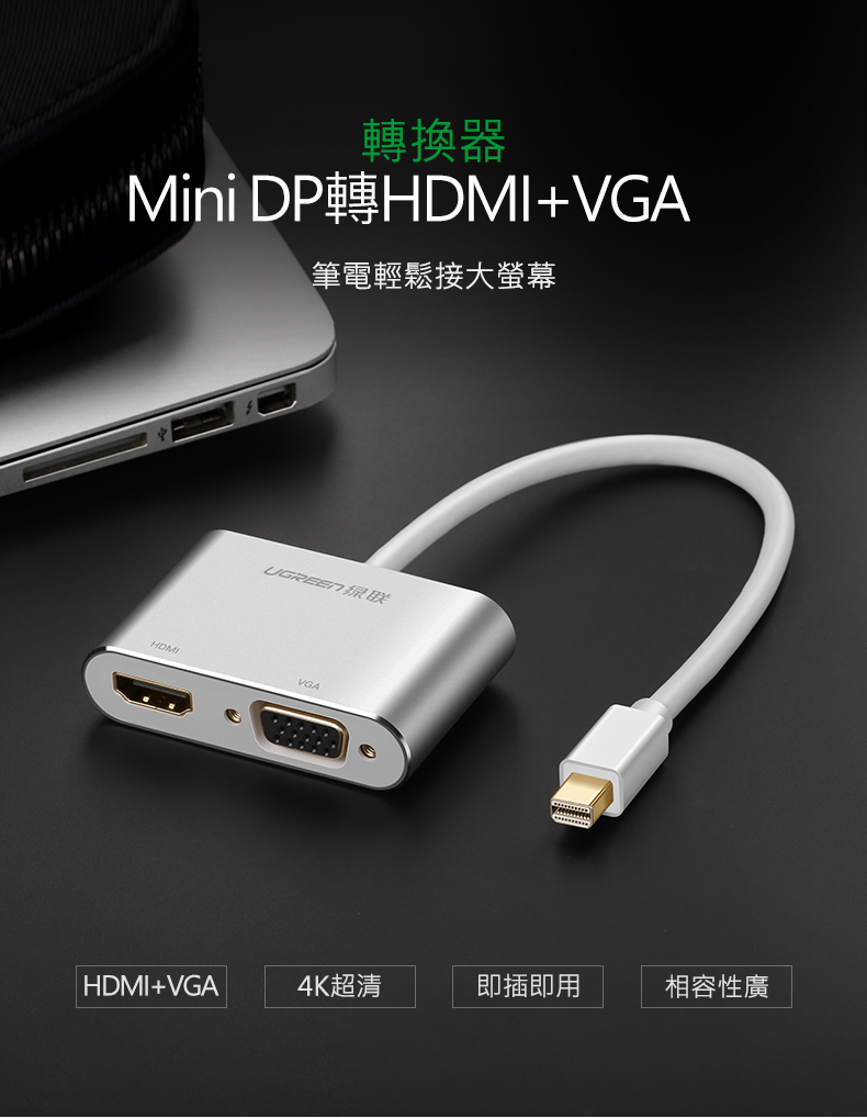 綠聯 Mini DP轉HDMI+VGA轉換器