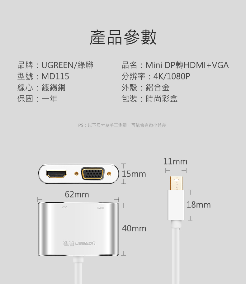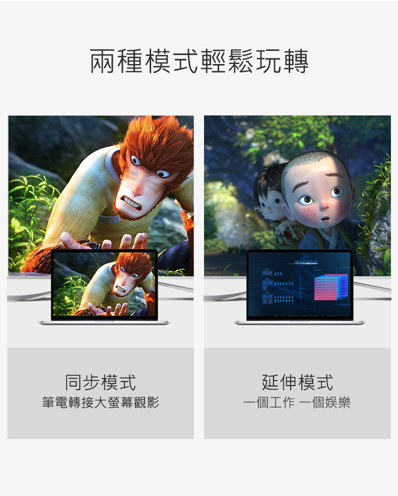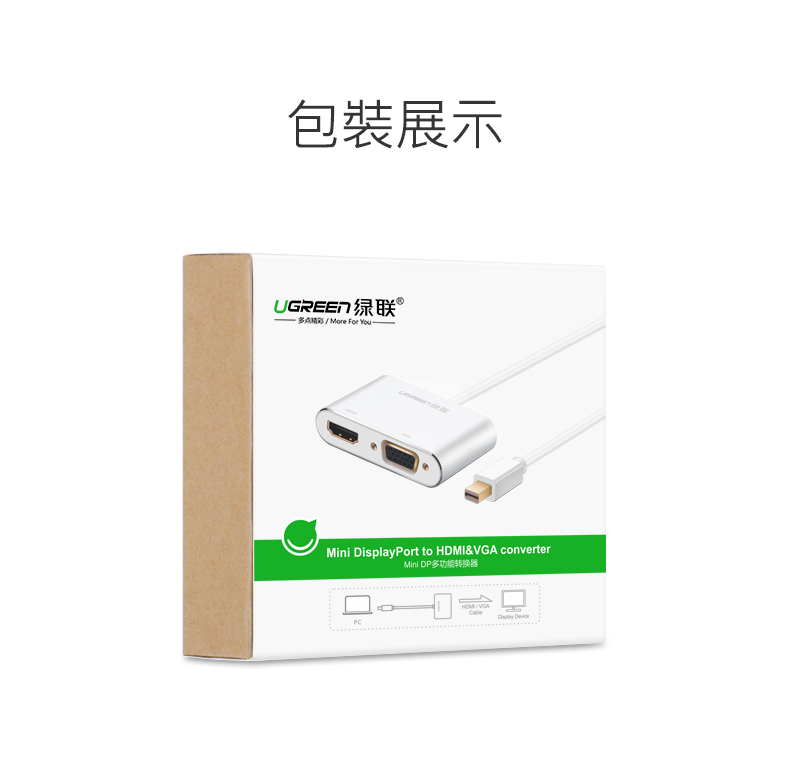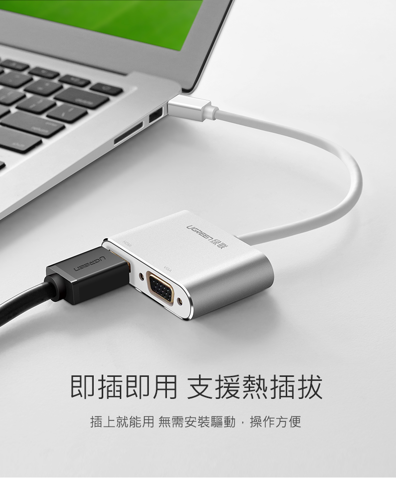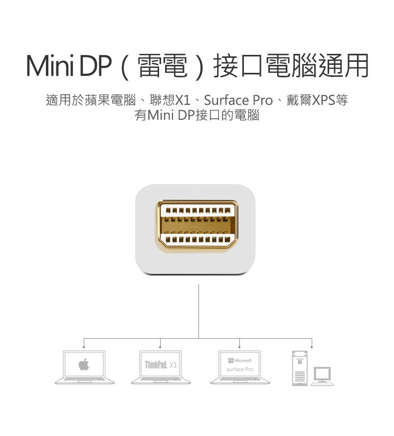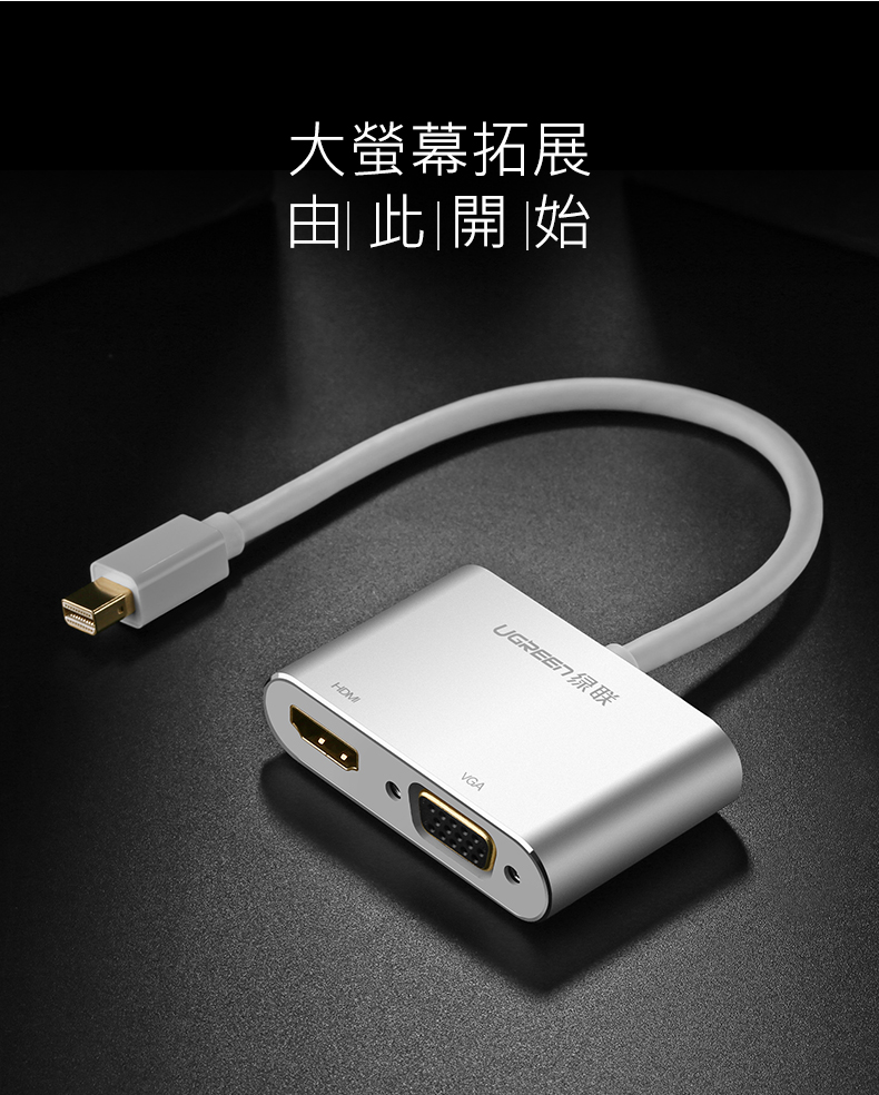 商品特色 ★二合一更便捷,支援熱插拔即插即用 ★Mini DP接口電腦通用 ★雙核心晶片不重影無雪花 ★合金機身不發熱