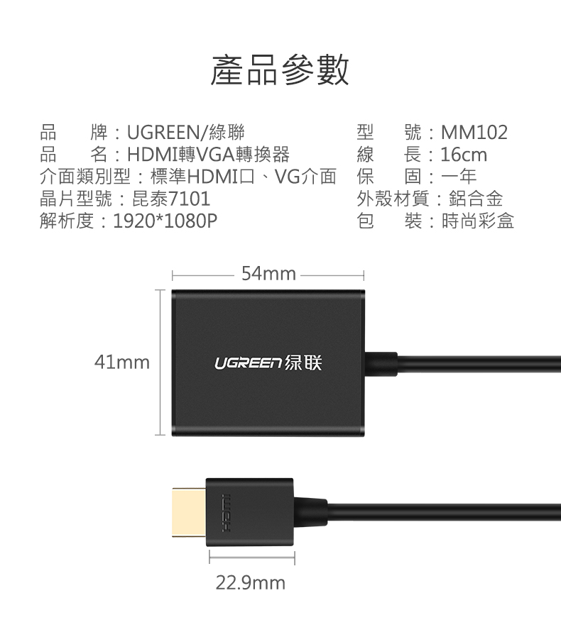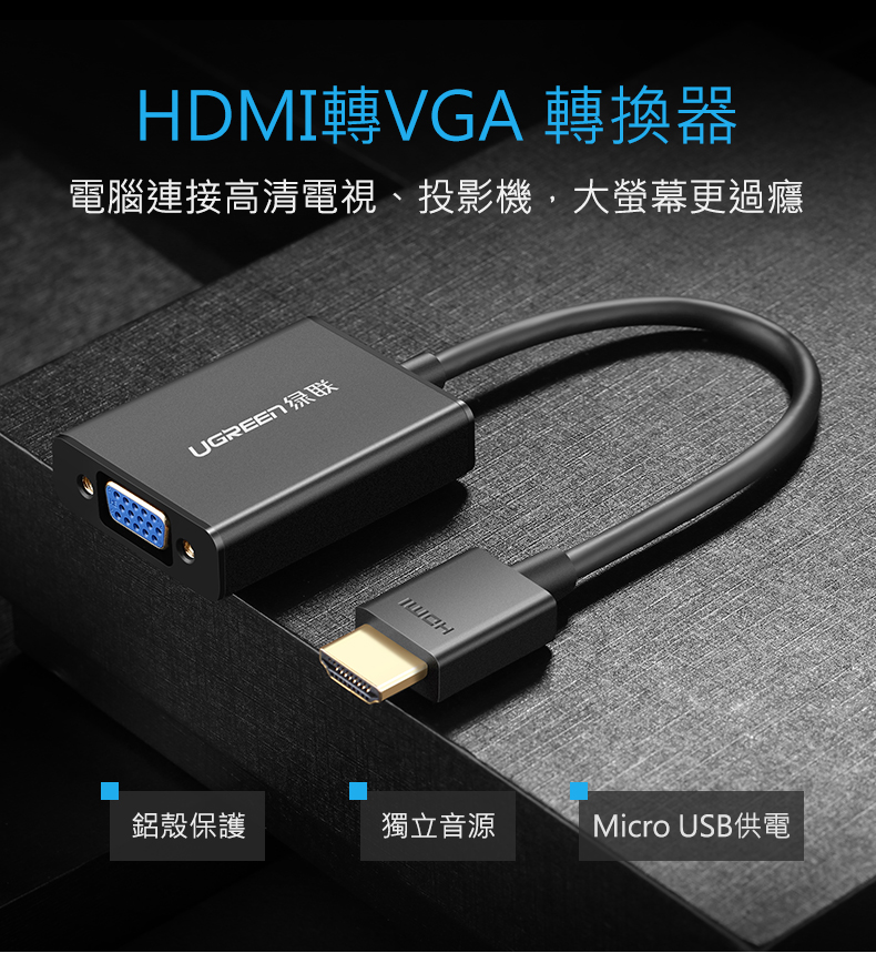 綠聯 HDMI轉VGA轉換器 Aluminum版 黑色