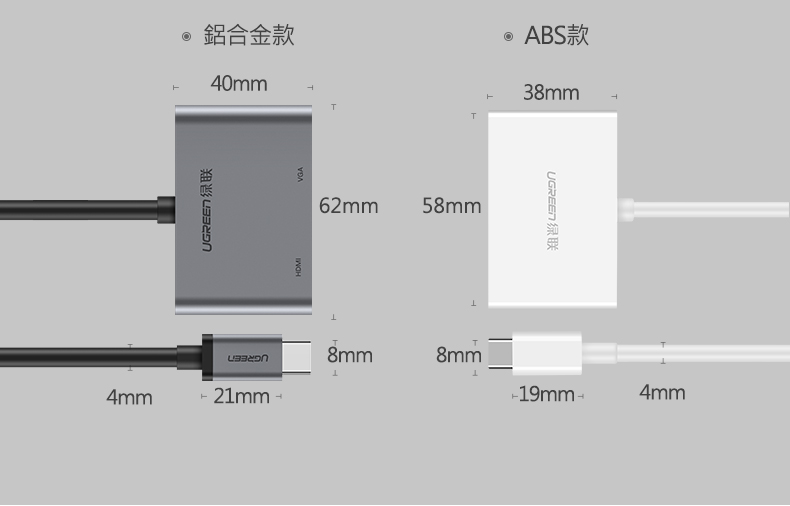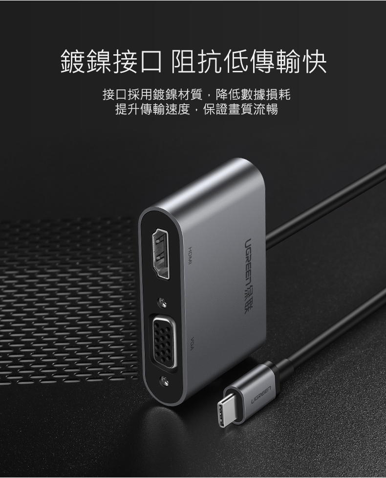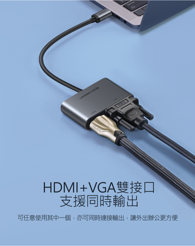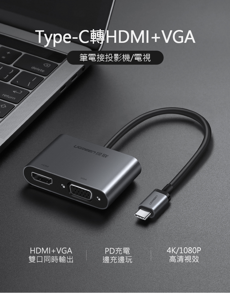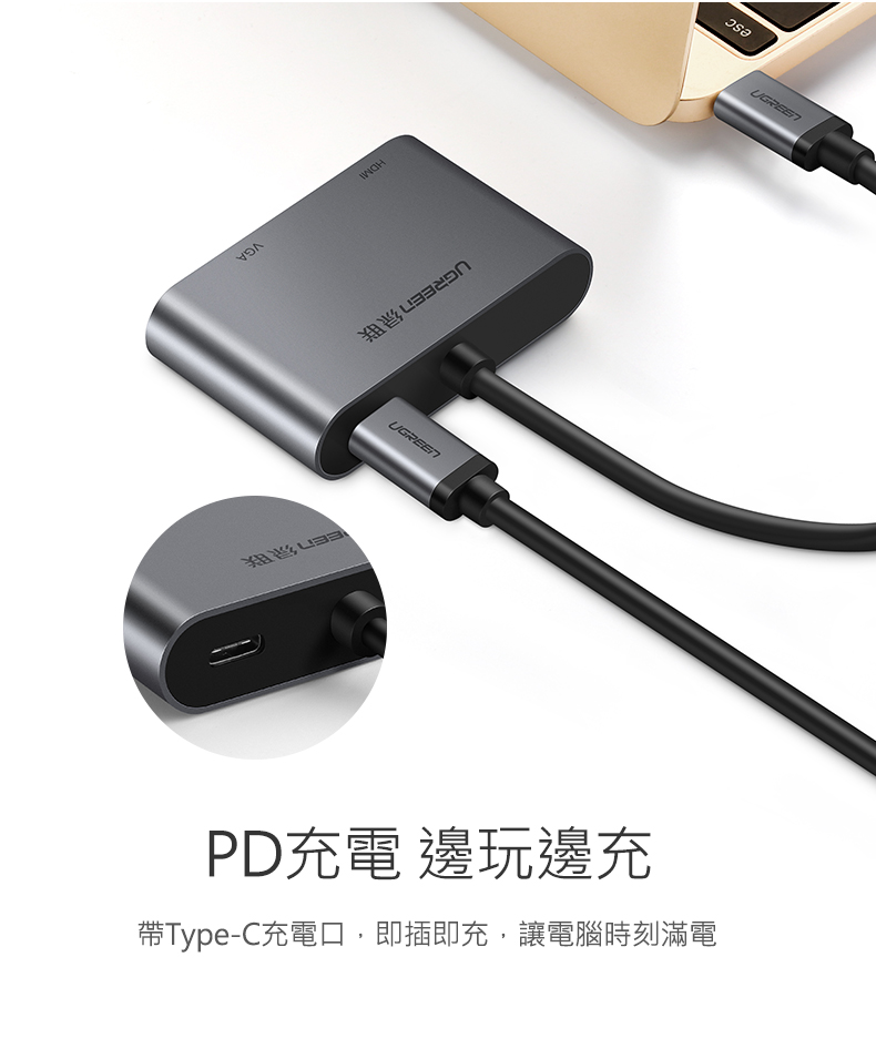 綠聯 Type C轉HDMI+VGA轉換器 支援PD版