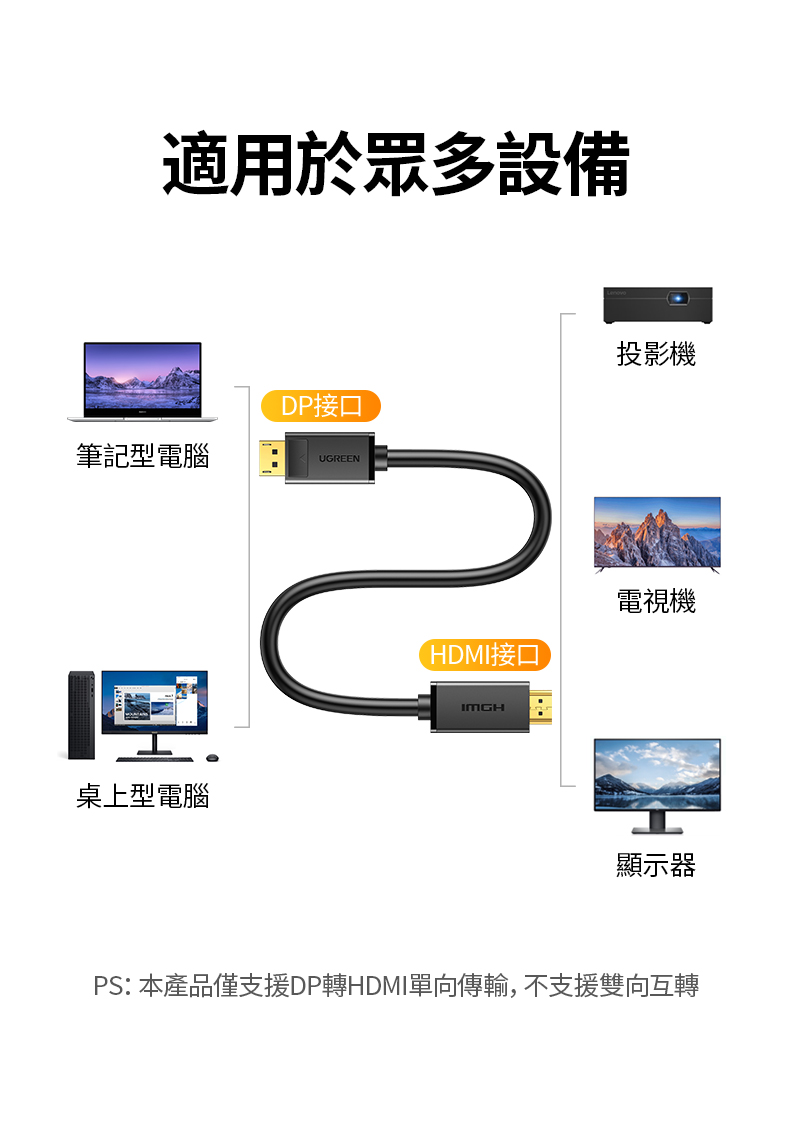 綠聯 DP轉HDMI線/DisplayPort轉HDMI線