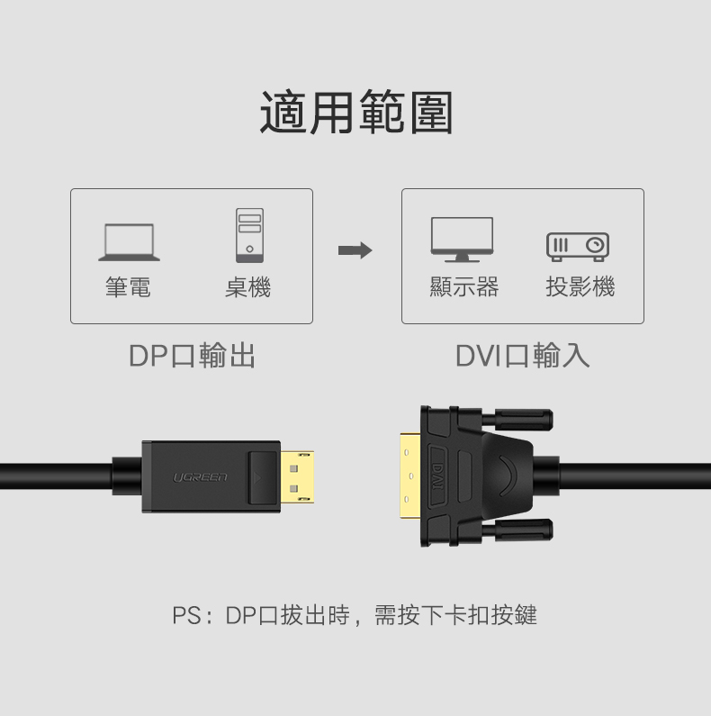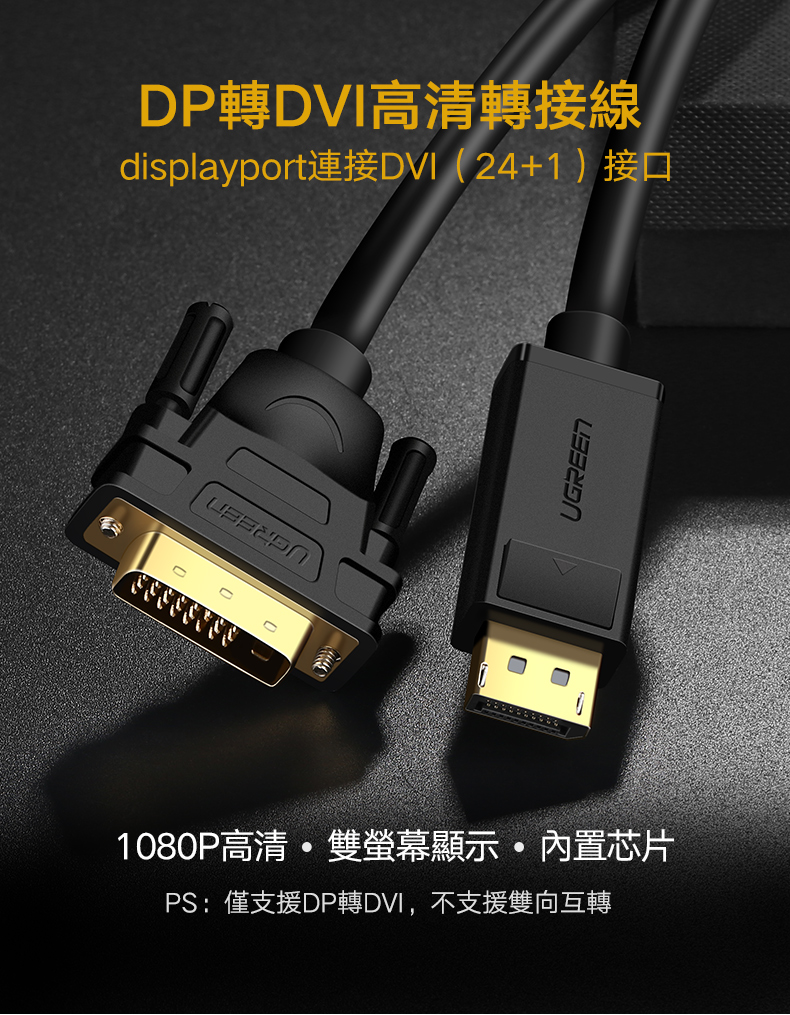 綠聯 DP轉DVI傳輸線 Display Port 1.1版