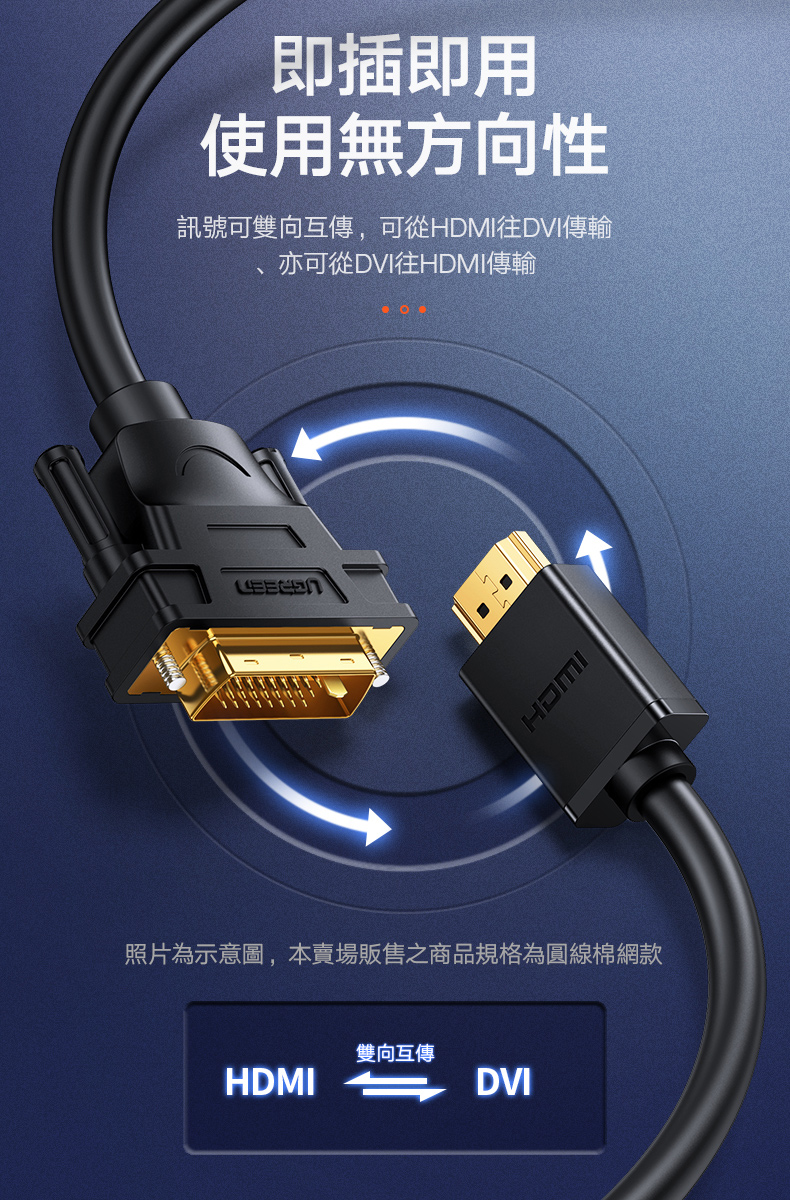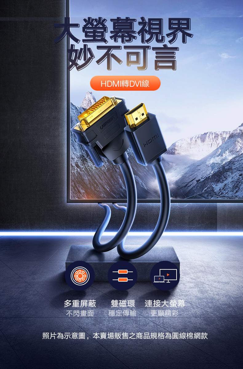 綠聯 HDMI轉DVI雙向互轉線 BRAID版