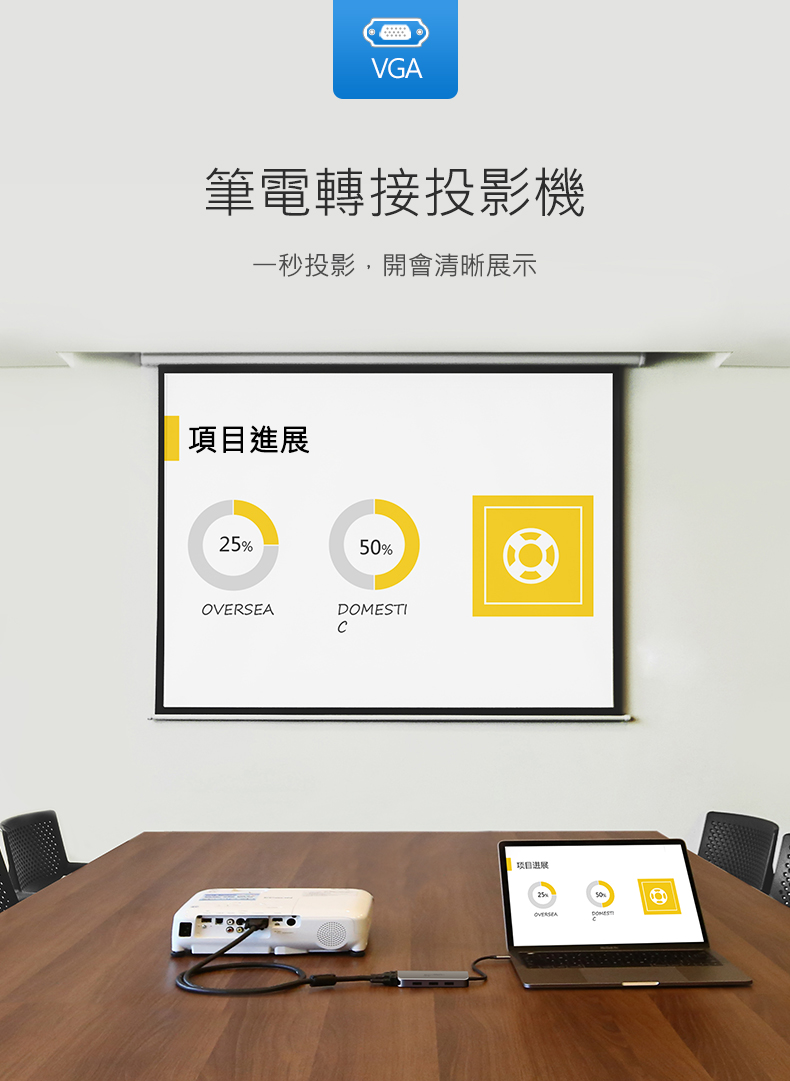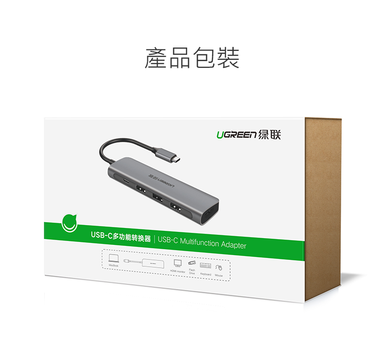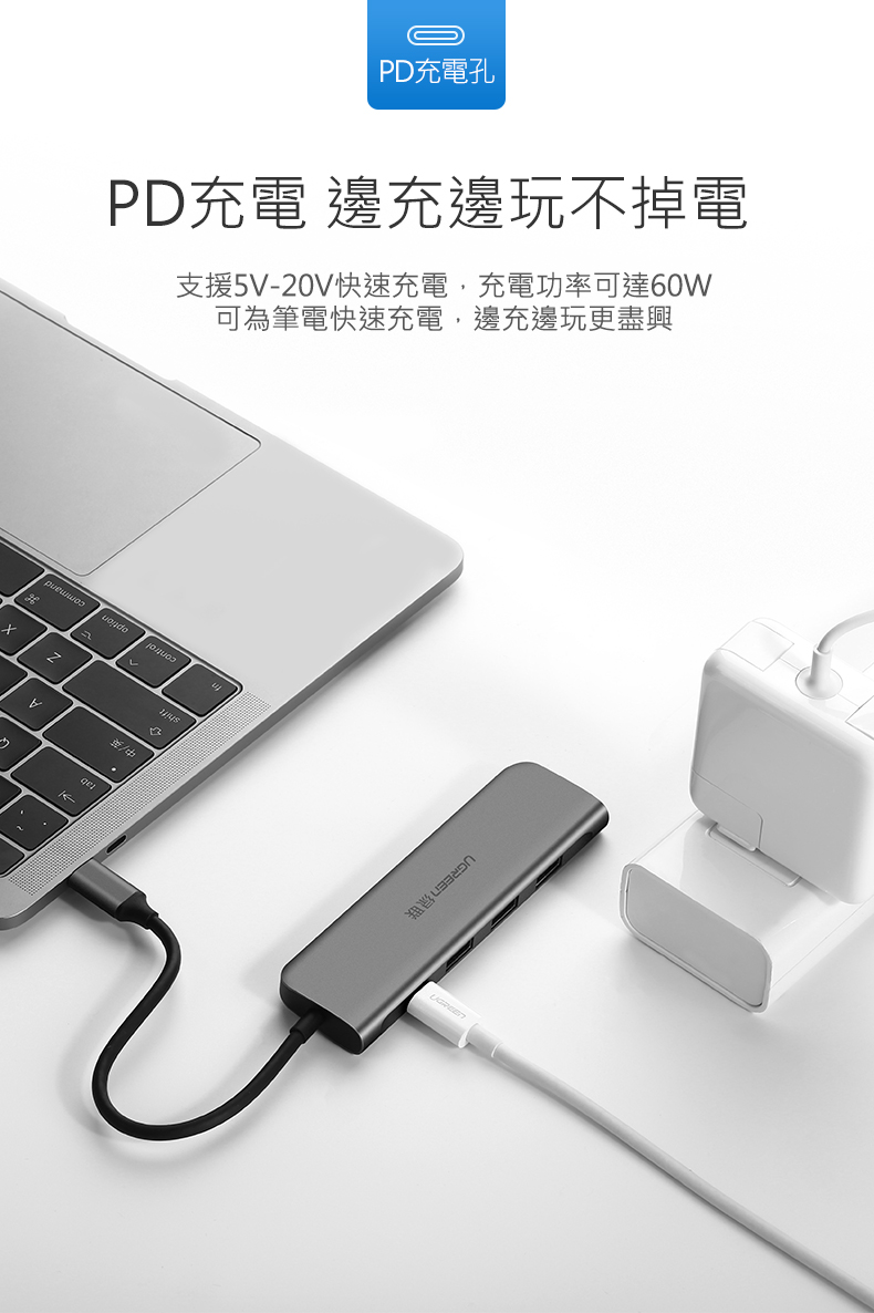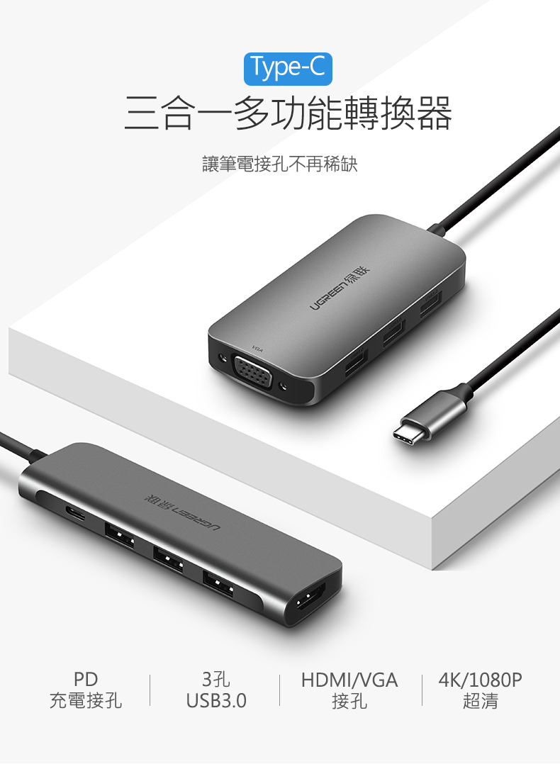 綠聯 USB-C轉VGA多功能轉接器 3 Port USB3.0+PD快充