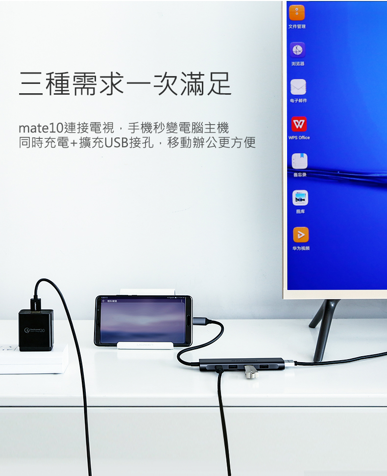 【商品特色】 ★BSMI許可字號:D45310 ★3孔USB3.0擴充孔 ★即插即用無須驅動 ★散熱快不發燙 ★三主控晶片傳輸更穩定 ★適用所有Type-C接口設備 ★原廠外箱破損/產品外觀略有磨損/配件完整/功能正常★