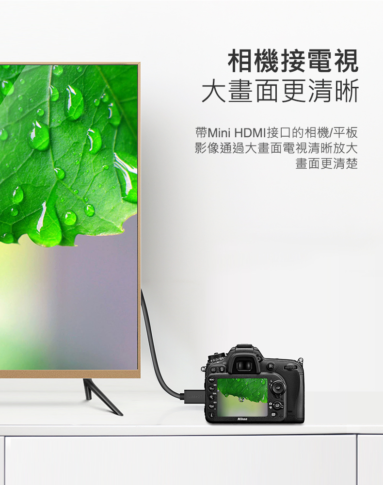 ◆相機接電視 大畫面更清晰 ◆音視頻同步輸出 ◆編織網+地線+鋁箔多重屏蔽 ◆TMDS技術 精準傳輸訊號 ◆鍍金接口 不生鏽 ◆PVC線身 安全耐用