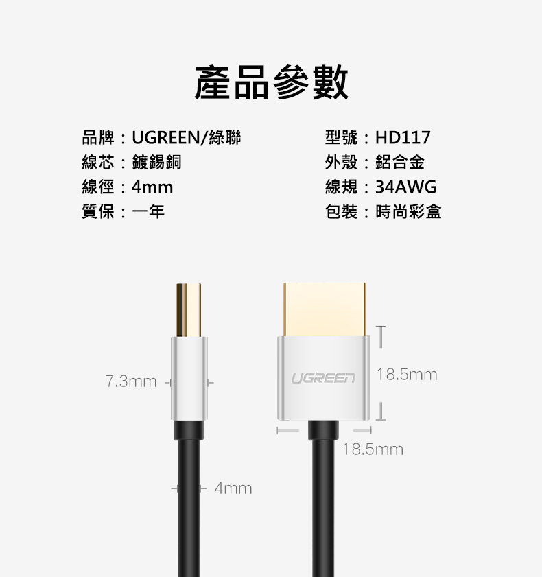 綠聯 HDMI2.0傳輸線 Zinc alloy版