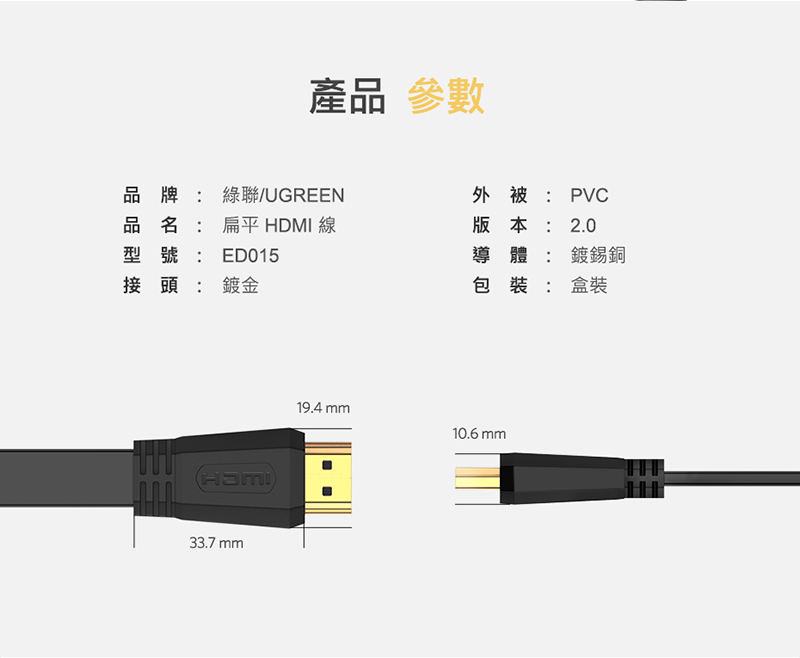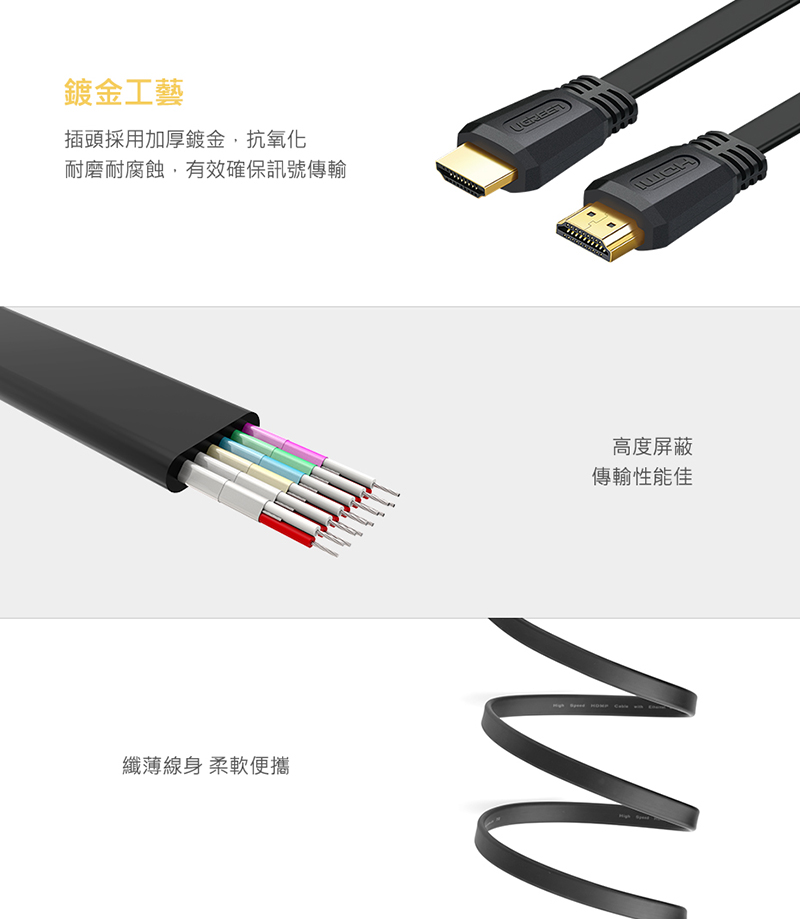 綠聯 HDMI 2.0傳輸線 FLAT版 黑色