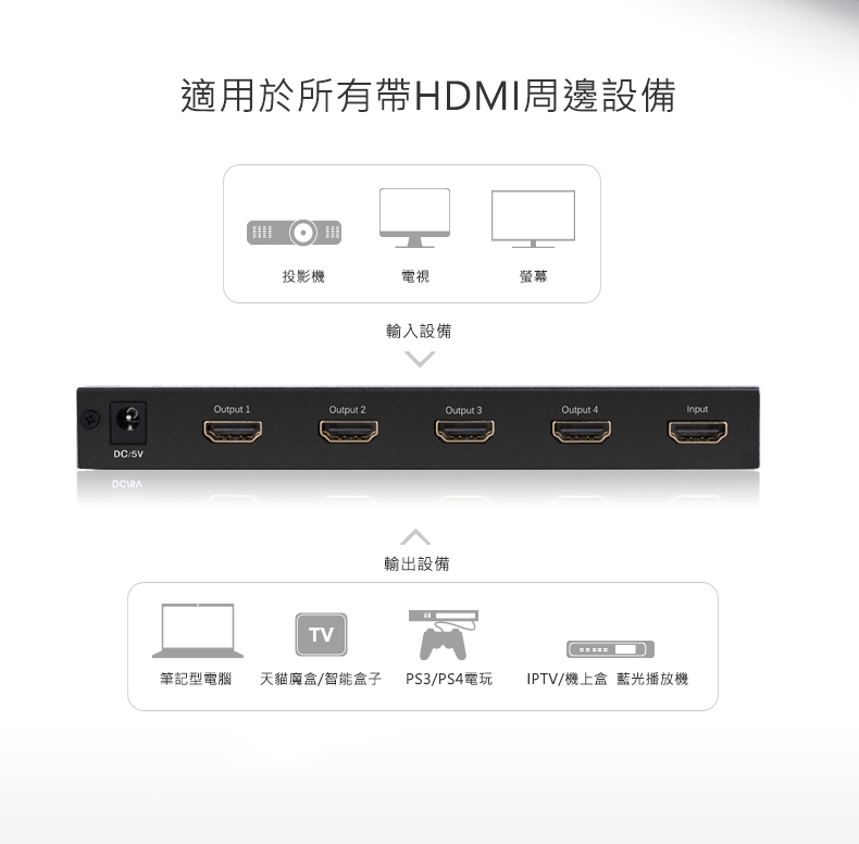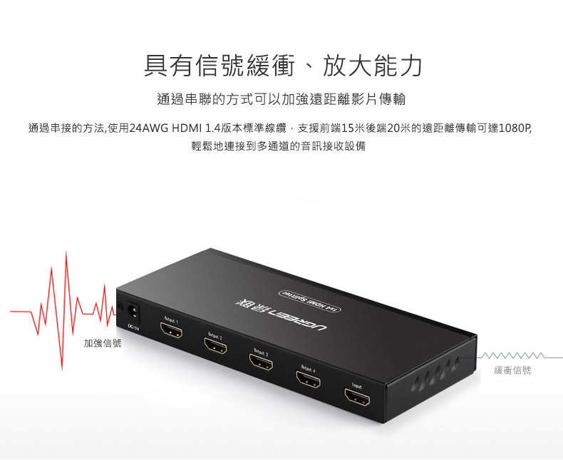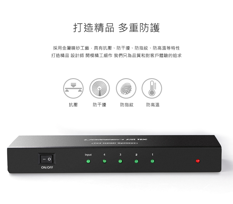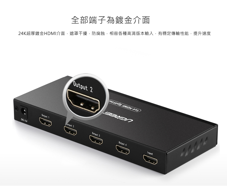 綠聯 HDMI一分四分配器(一進四出) 4K金屬版