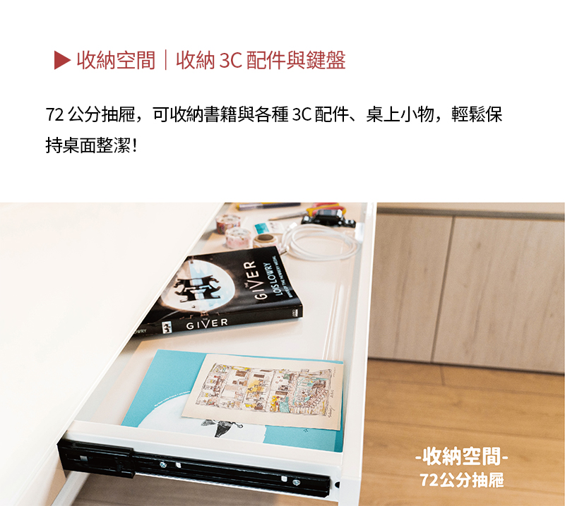◆ 1.2M桌面 附隱藏式抽屜